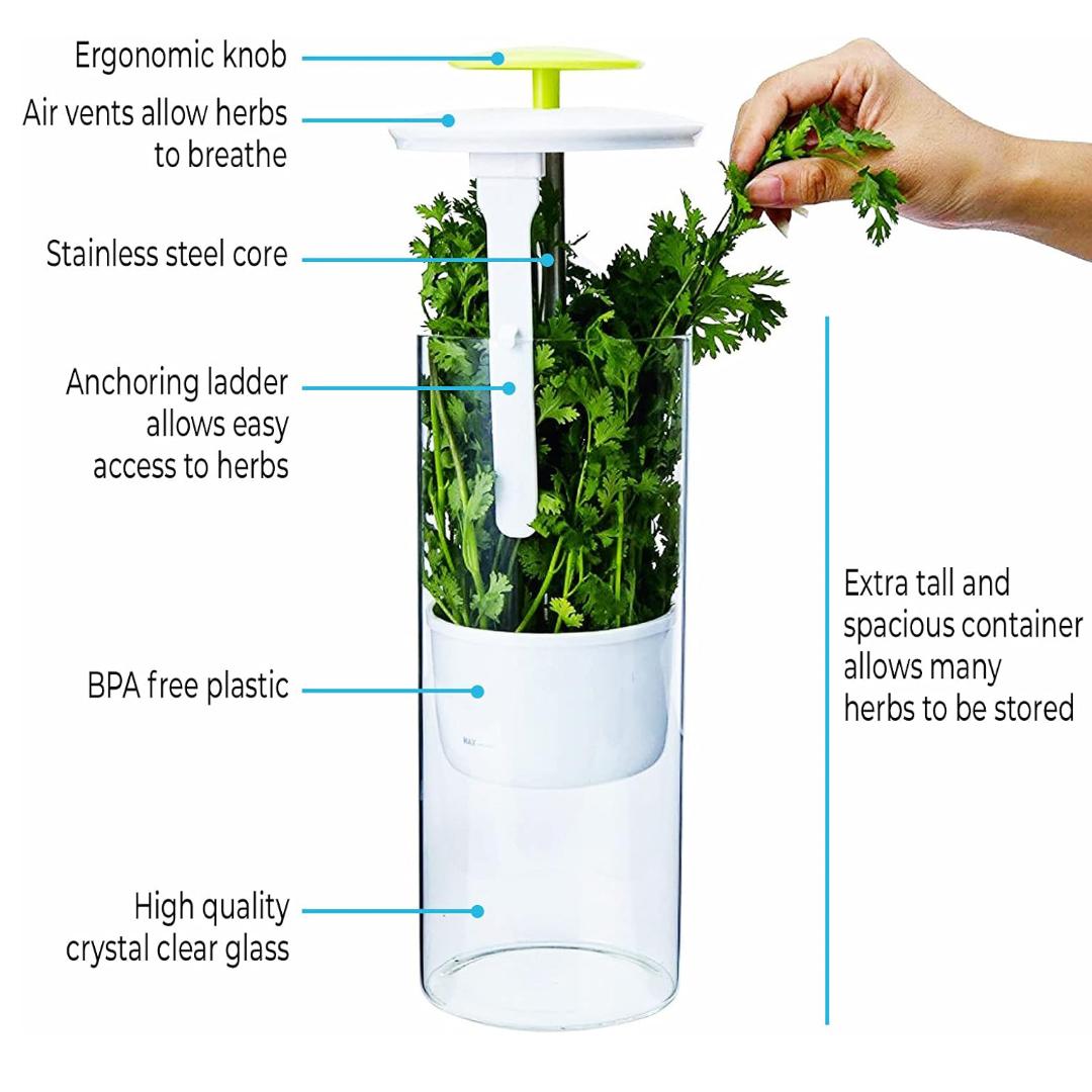 Keep Herbs Fresh Longer – Designed with optimal breathable airflow, this herb keeper helps maintain the freshness of rosemary, parsley, mint, thyme, sage, and more.