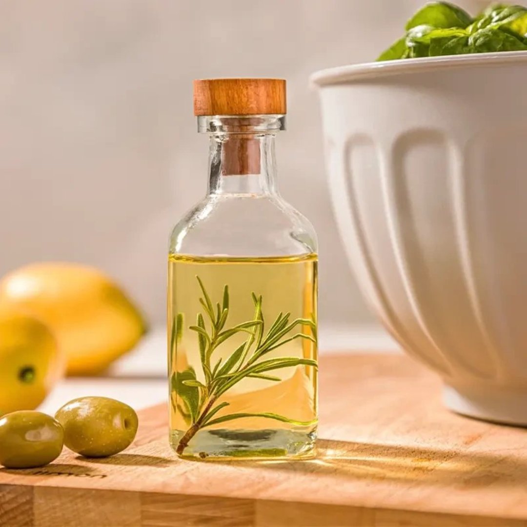 Elegant Wooden Cap – Features a stylish wooden cap that adds a natural, rustic touch while ensuring a secure seal to preserve freshness and prevent leaks.