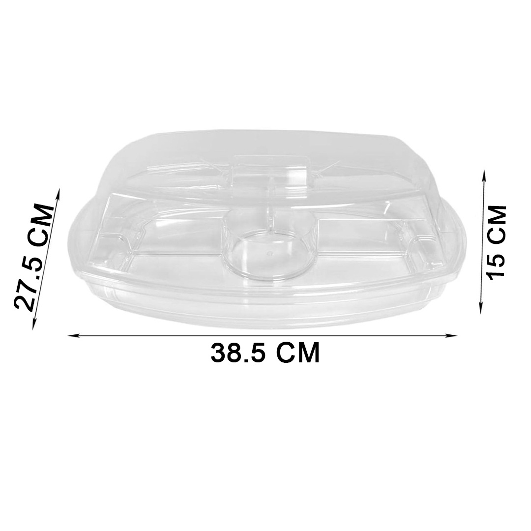 Innovative 3-Tier Design – Features a transparent 3-tier structure with a lid to keep food fresh and bug-free. Includes a 4-compartment ice tray at the bottom to keep dishes chilled and perfectly displayed.