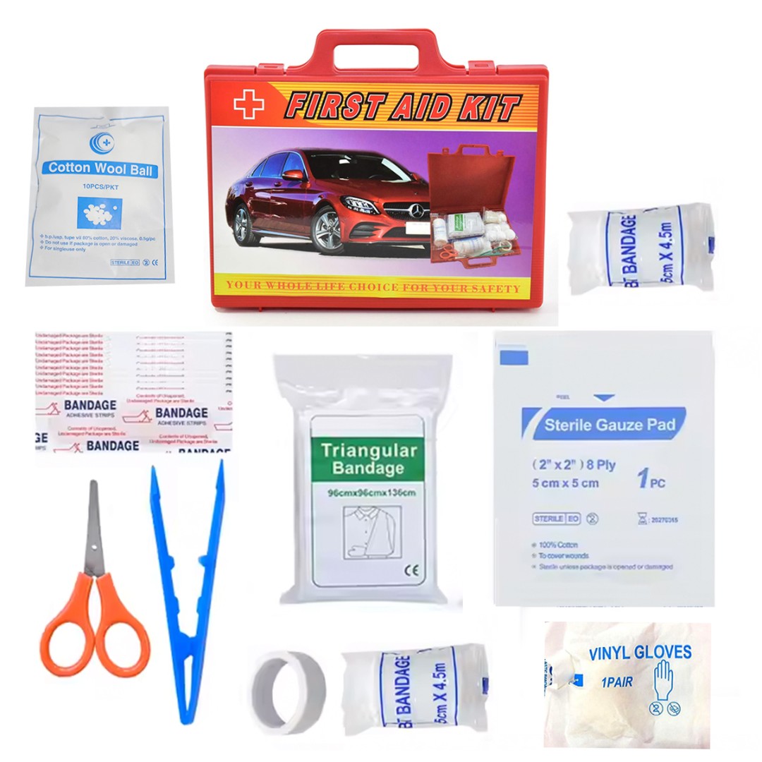 Compact & Travel-Friendly Case: Housed in a sturdy, portable red case with a car-themed design, this kit is perfect for keeping in your vehicle, ensuring you're always prepared during road trips or emergencies.