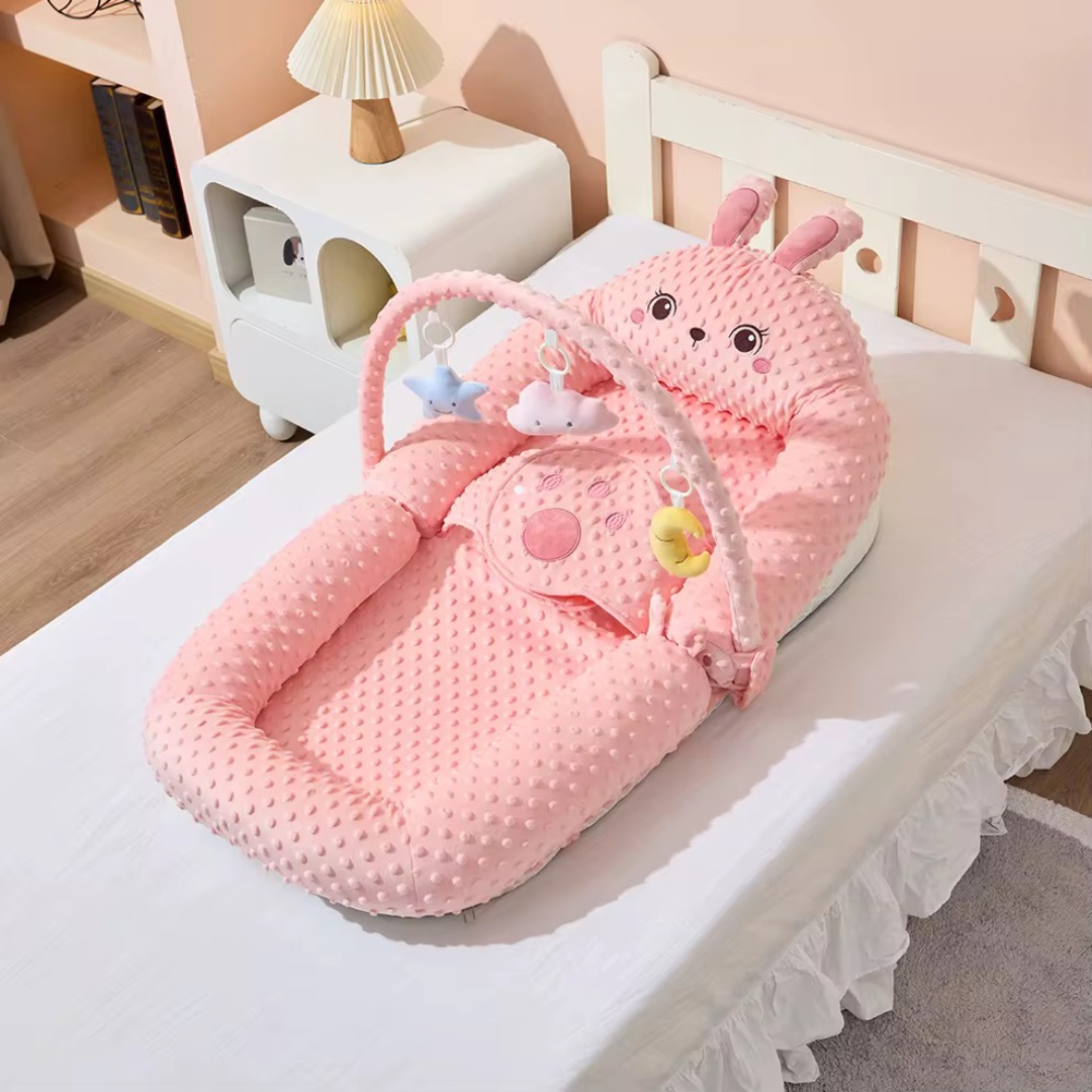 Multifunctional Design – This baby bed serves multiple purposes: anti-spitting milk with a 15° slope, promotes restful sleep, supports sitting posture for learning, and helps babies lift their heads during tummy time (ideal for 3–6 months).