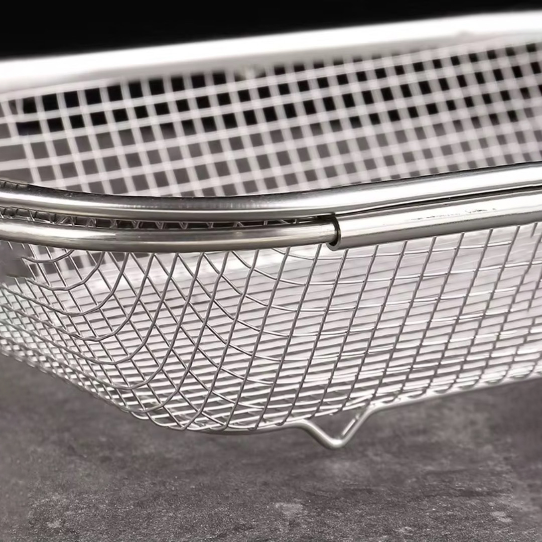 2. Durable Stainless Steel Mesh: Crafted from high-quality stainless steel wire for long-lasting use, rust resistance, and efficient drainage.