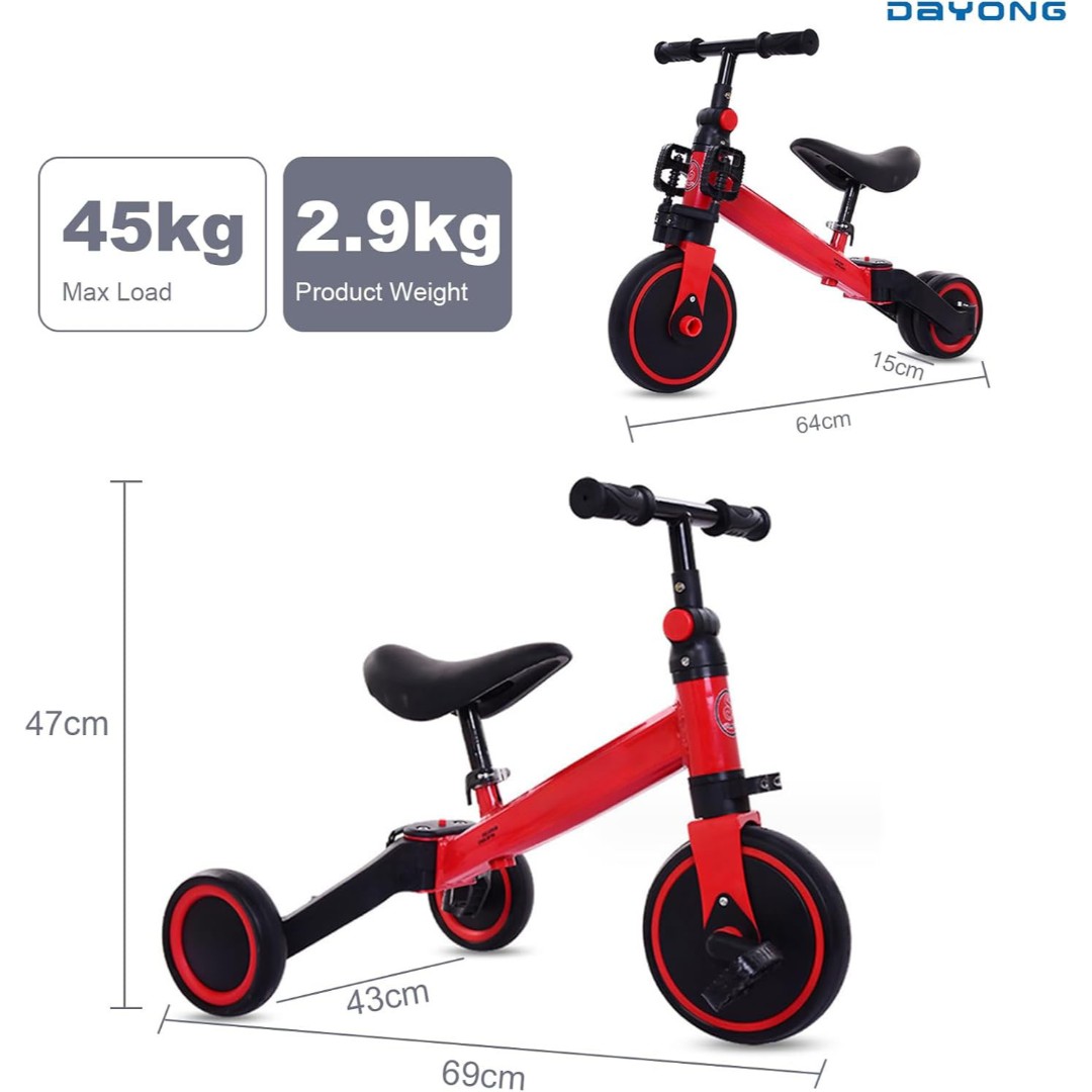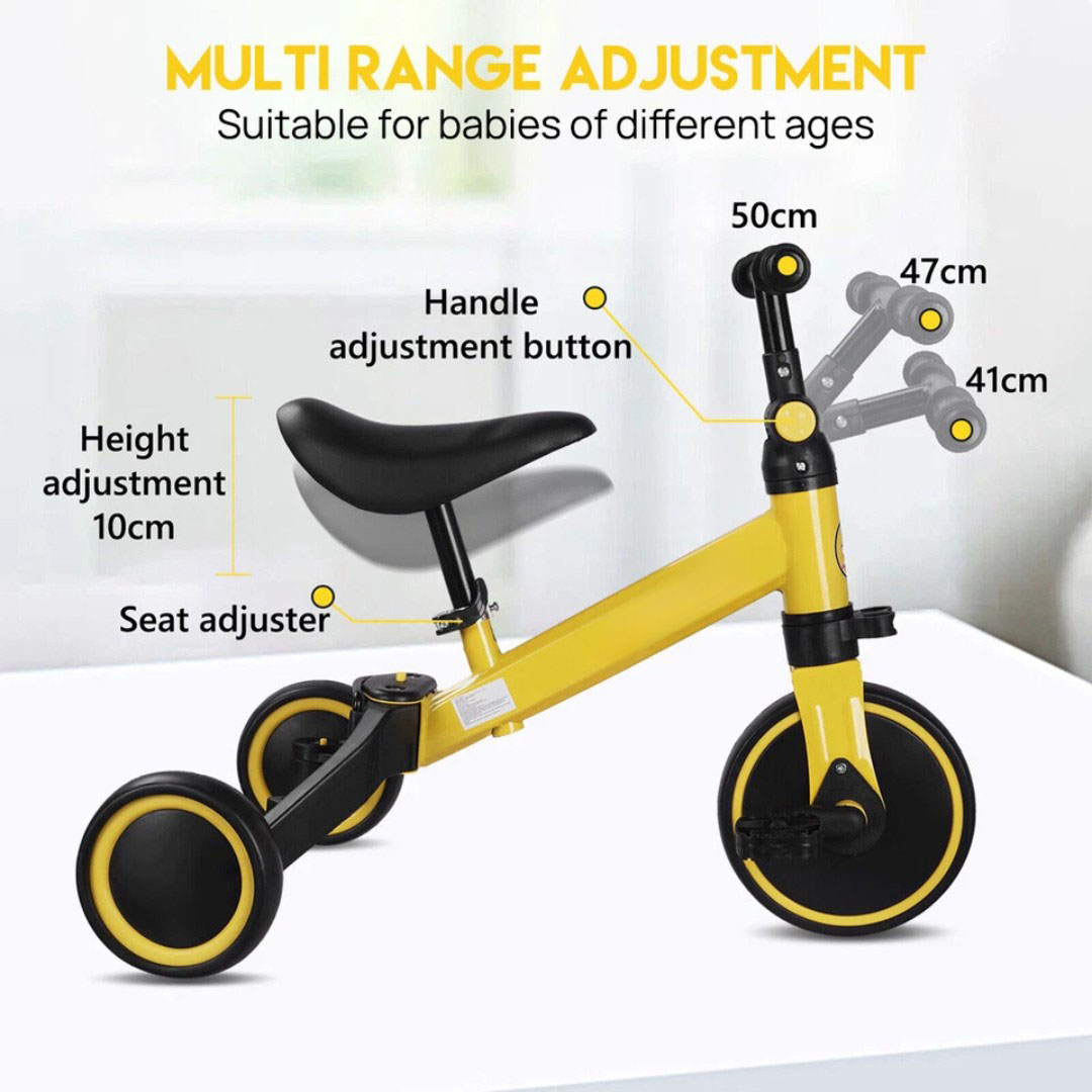 3-in-1 Convertible Design – Easily switches between Glide Assist Mode, Pedal Three-Wheel Mode, and Balance Bike Mode to suit children aged 1.2–4 years.