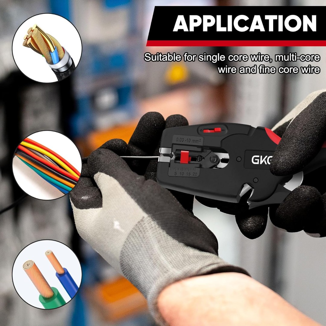 Self-Adjusting Mechanism – Automatically adapts to wire size for quick, precise stripping of various conductor types, including PVC and other insulation materials.