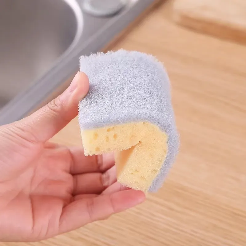 Dual-Layer Design – Features a soft sponge side for gentle cleaning and a tough scouring pad side for tackling stubborn stains.