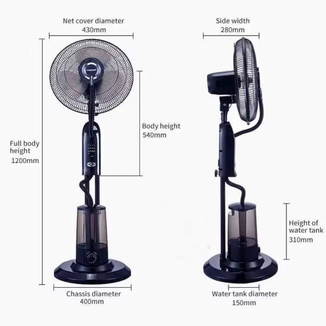 2-in-1 Cooling & Humidifying – Combines a powerful 75W fan with a 200 ml/h misting function to deliver both cool airflow and refreshing moisture, helping reduce dryness while keeping the room comfortable in hot weather.