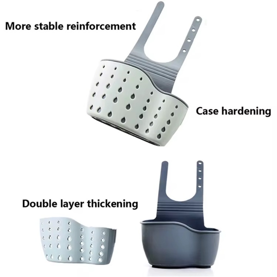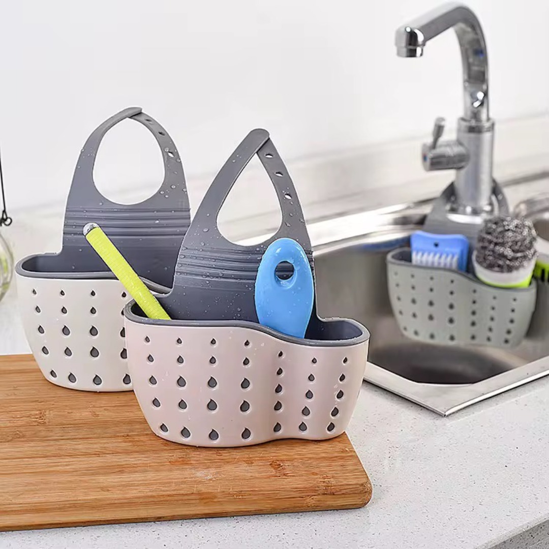 Adjustable over-faucet sink caddy – Buttoned strap fits most taps and sink dividers for quick, tool-free installation and removal.