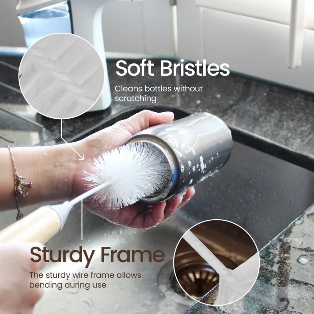 Long and Flexible Bristles: Its long bristles (16 inches) and flexible design allow for deep cleaning of bottles and other containers, reaching areas that are typically hard to access with regular brushes.