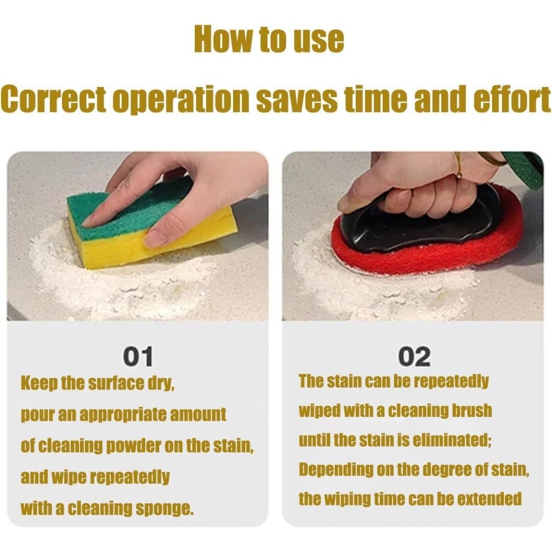 Effortless Cleaning: Simply apply the powder and wipe away stains—no rinsing required, leaving surfaces clean and shiny in seconds.