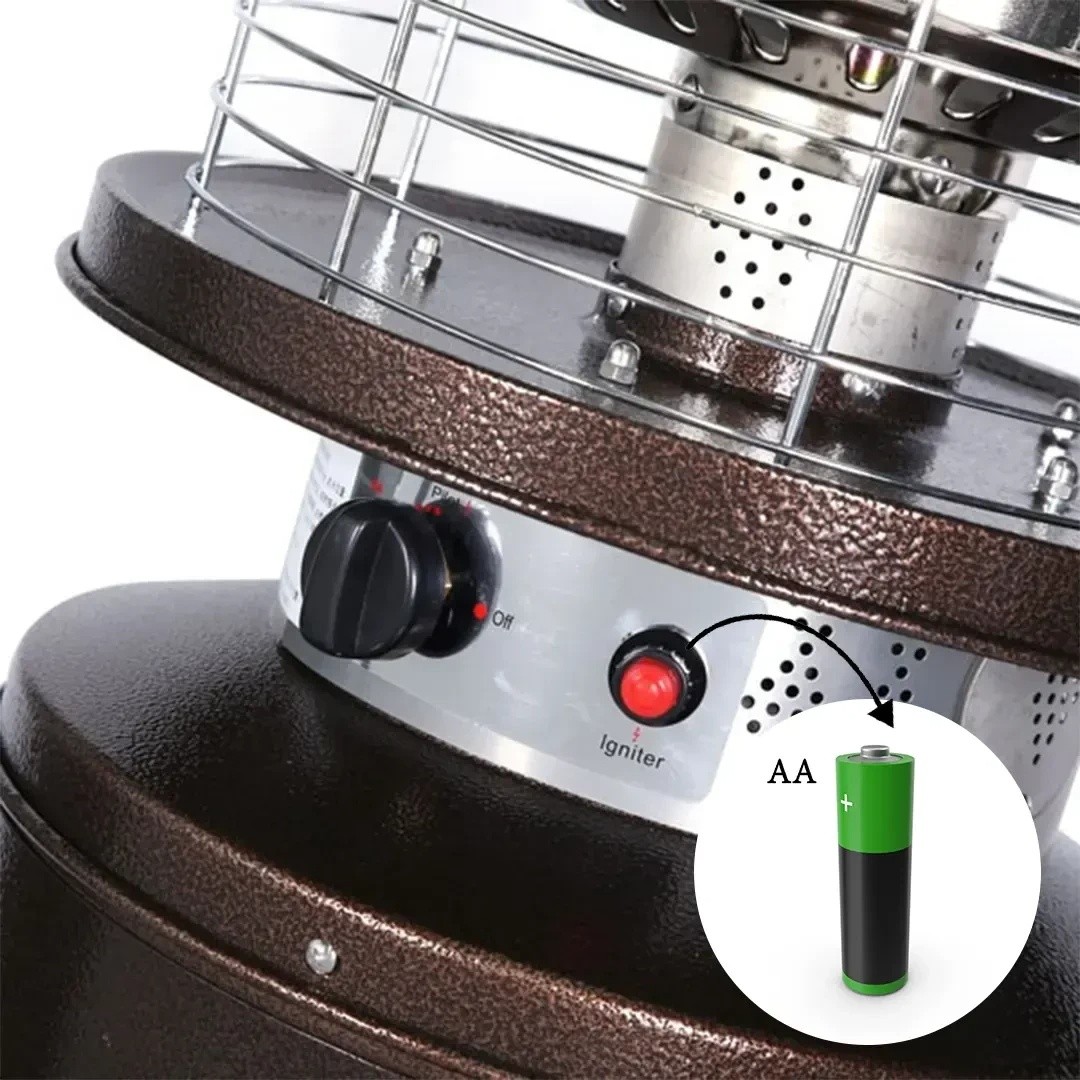Easy Ignition System: Features a user-friendly ignition switch and control knob for instant flame adjustment.