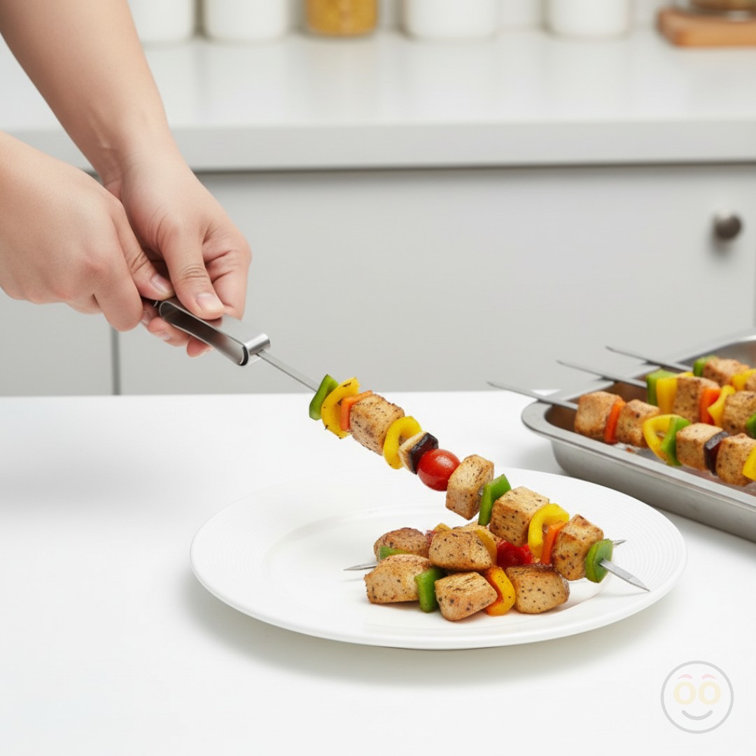 Comfort Hand Grip: Ergonomically designed handle provides a secure, non-slip grip for safe and comfortable skewer handling.