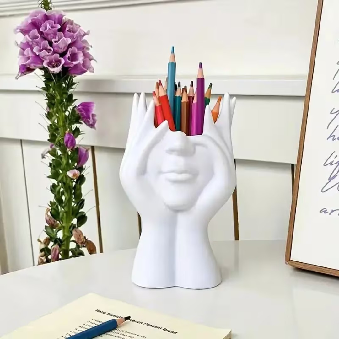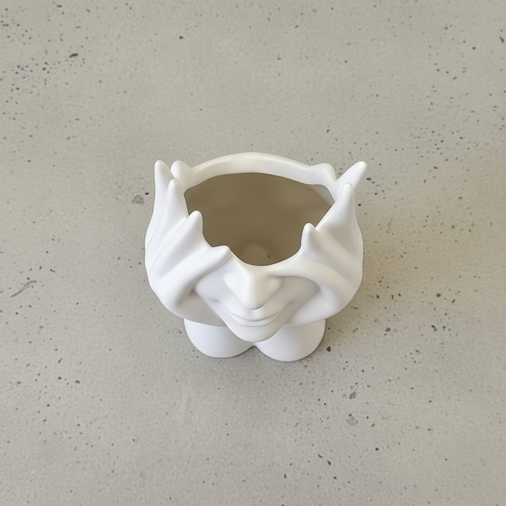 Unique Artistic Design: Abstract face-and-hands sculpture vase that adds a modern artistic touch to any room.