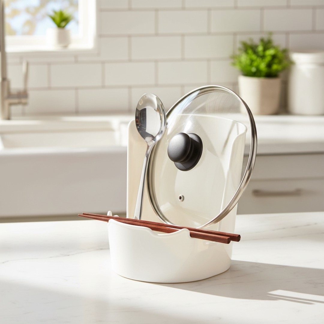 Drip-Catching Base: Built-in base collects drips and condensation from utensils and lids, protecting countertops from stains and mess.