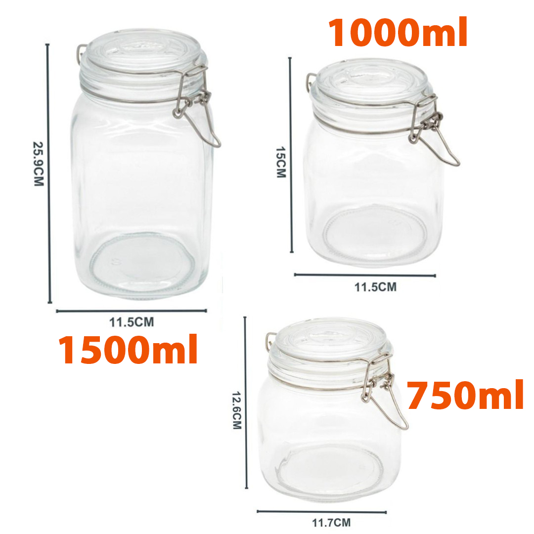 Multiple Size Options: Available in 750ml, 1000ml, and 1500ml capacities to suit different storage needs, from spices and snacks to pasta and dry goods.