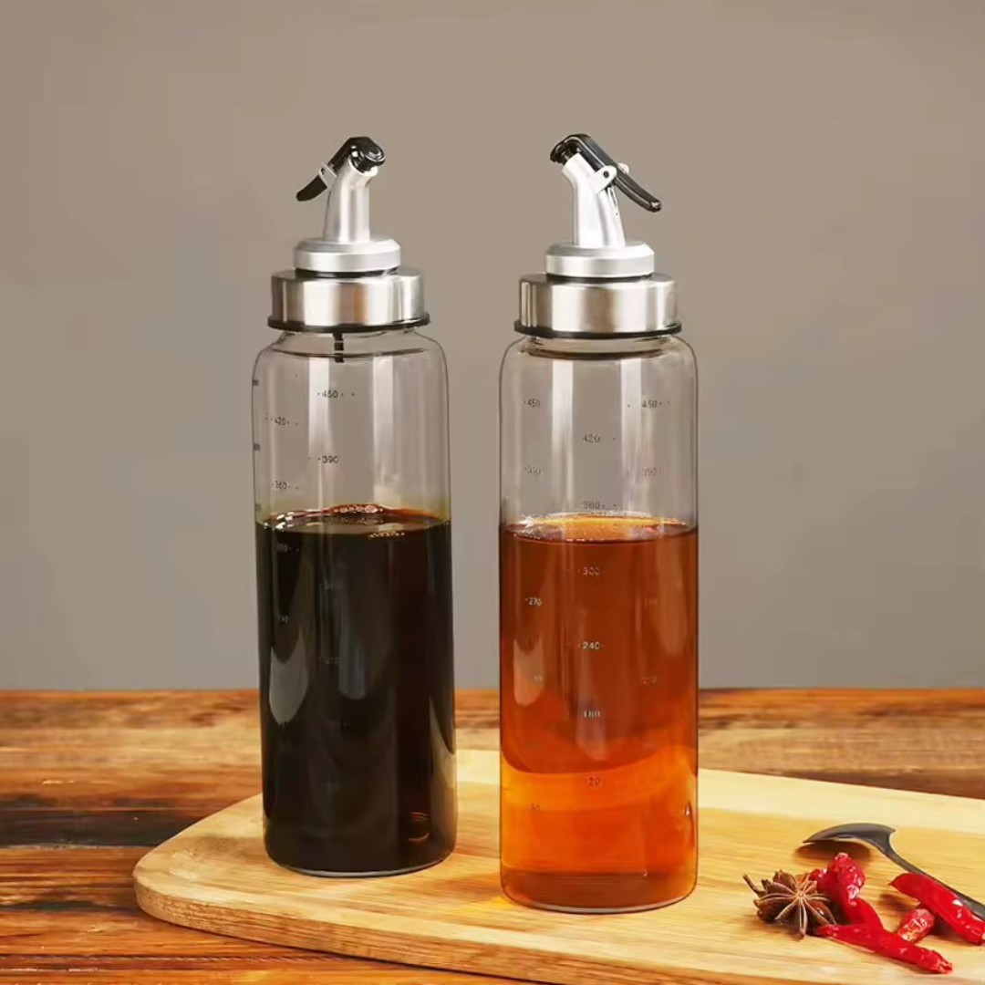 Multiple Size Options: Available in 300ml and 500ml capacities, ideal for storing olive oil, vinegar, soy sauce, or other liquid condiments.