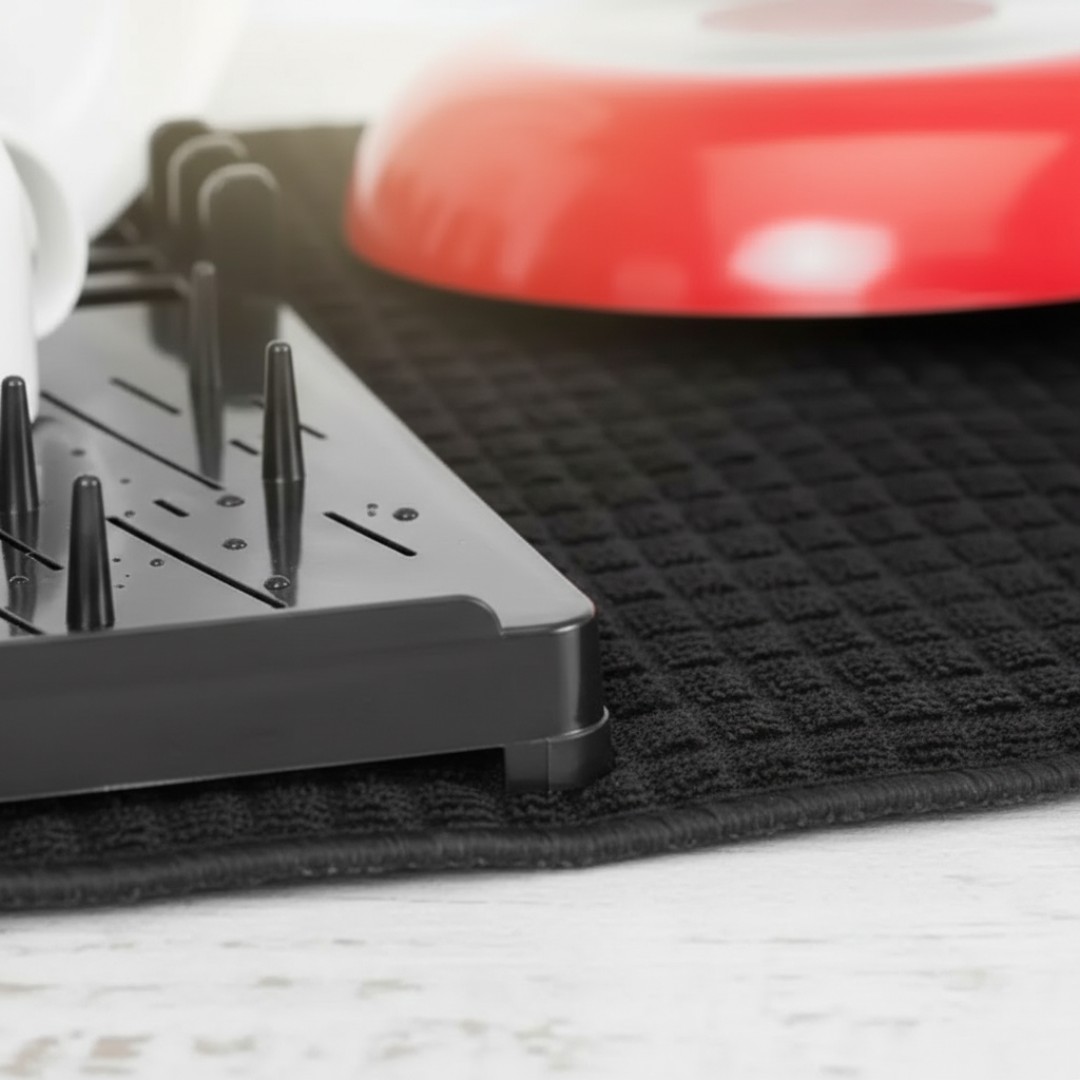 Absorbent Drying Mat: Comes with a large, soft microfiber mat that quickly absorbs excess water, keeping countertops dry and protected from spills.