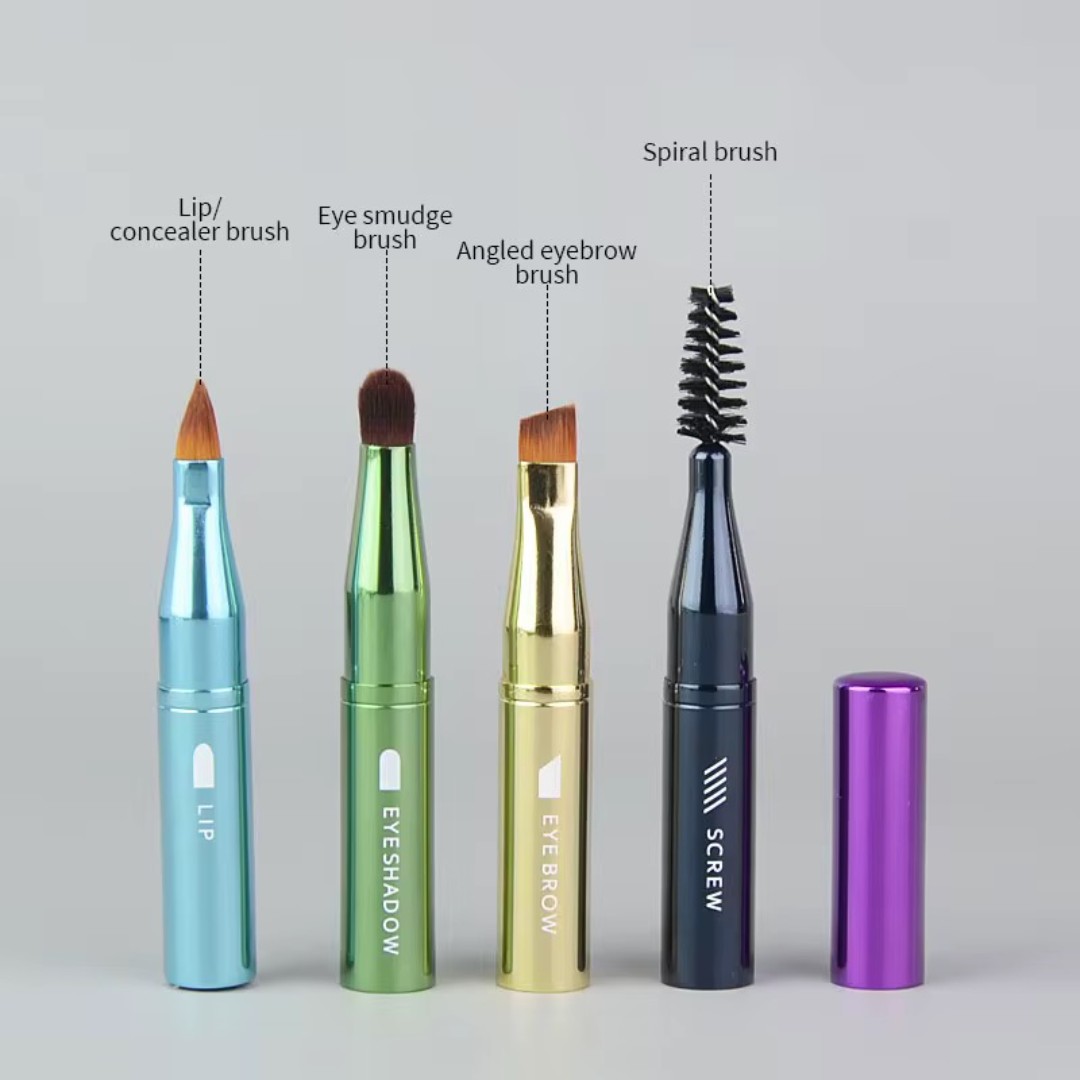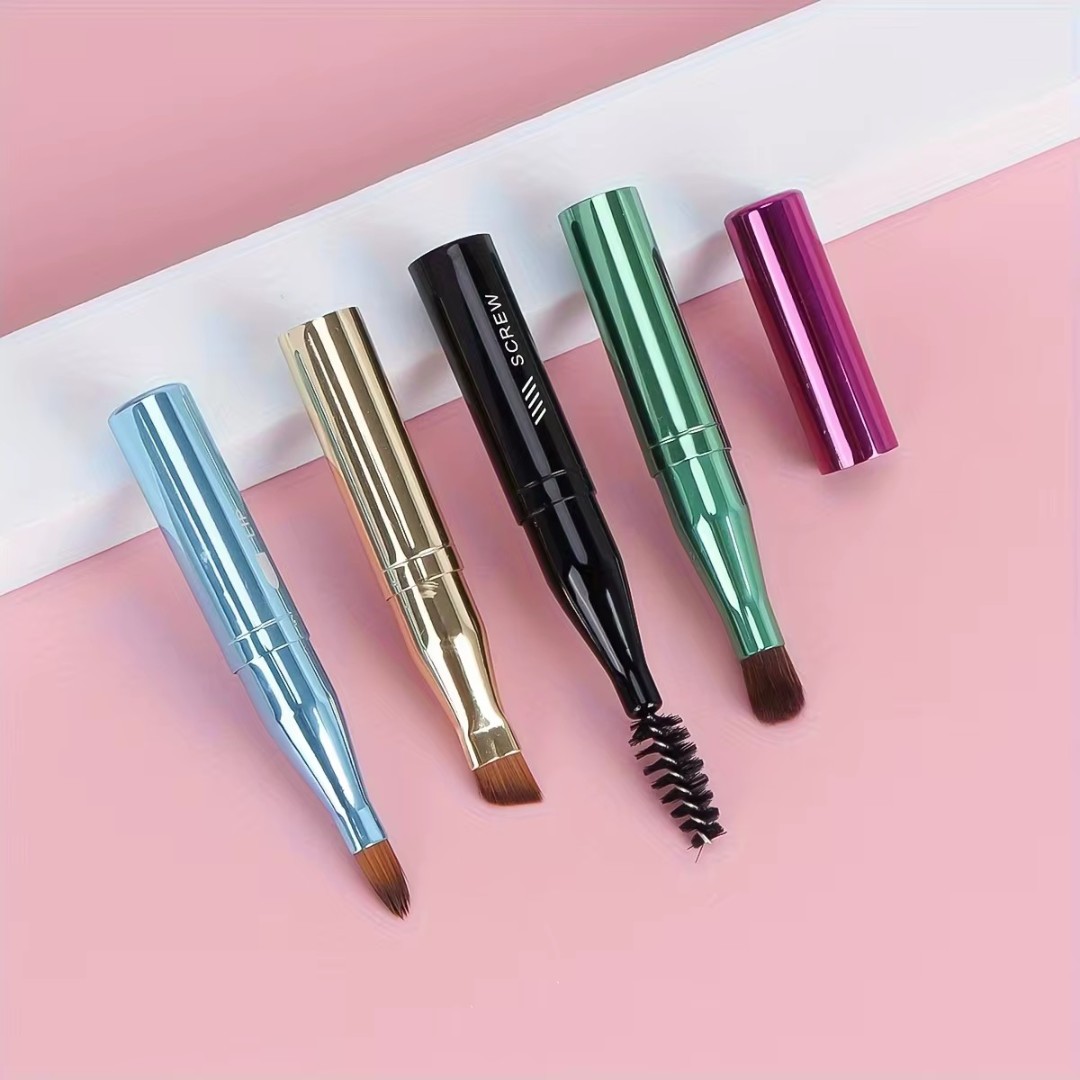 Four-in-One Multifunction Design: Combines lip brush, eyeshadow brush, angled eyebrow brush, and spiral mascara brush in one compact tool for complete eye and lip makeup.