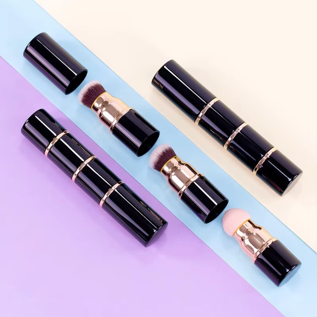 Dual-Head Makeup Applicator Design: Features interchangeable brush and sponge heads in one compact stick, allowing smooth application of foundation, blush, contour, and concealer.