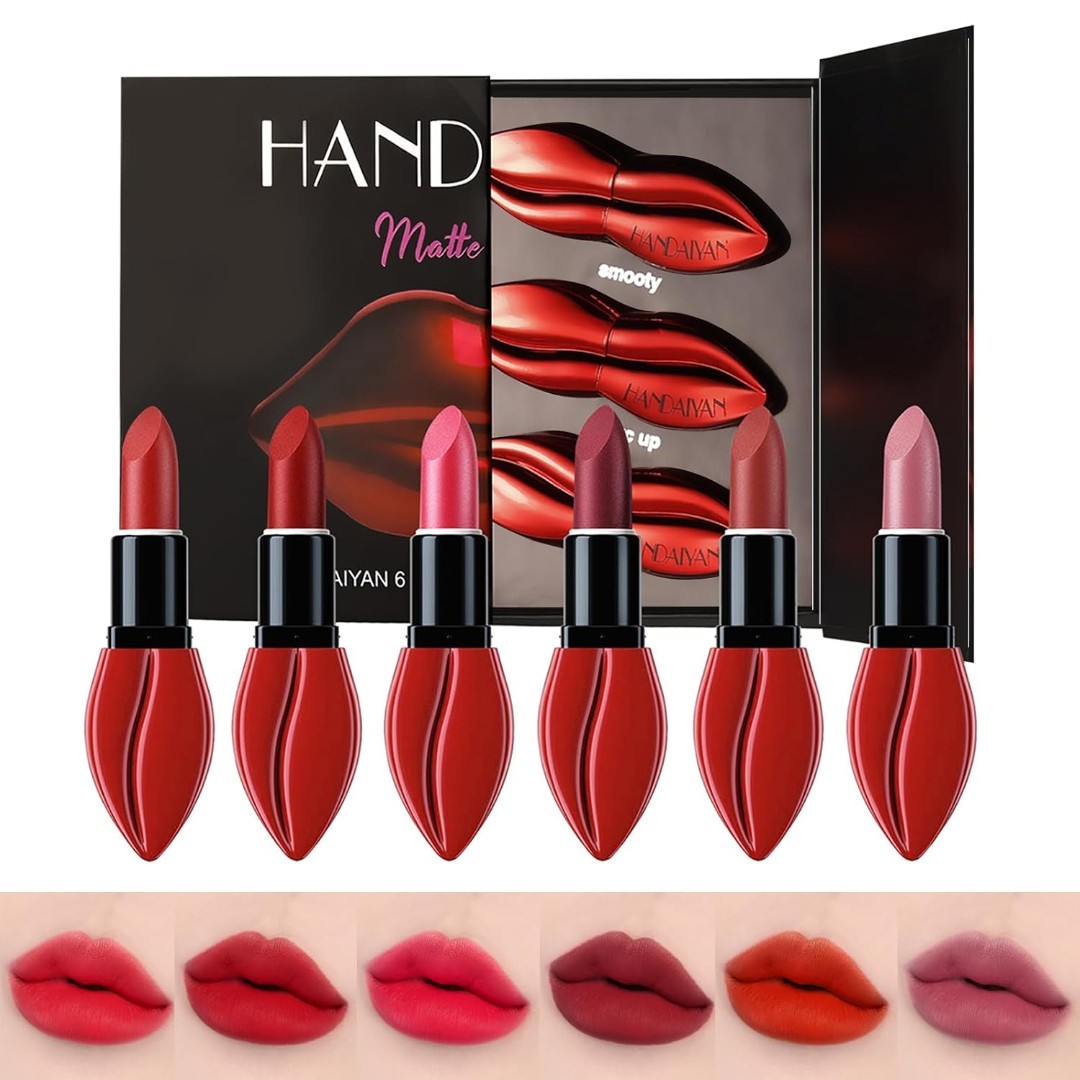 6-Piece Matte Lipstick Set: Includes six beautifully coordinated matte lipstick shades, offering versatile color options for everyday wear and special occasions.