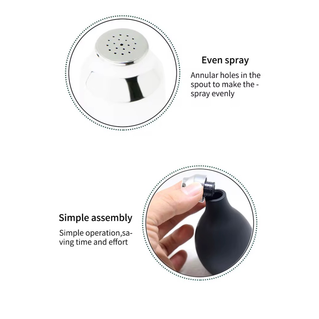 Durable & Reusable Construction: Made with a high-quality rubber bottle and metal spray nozzle for long-lasting, repeated use.