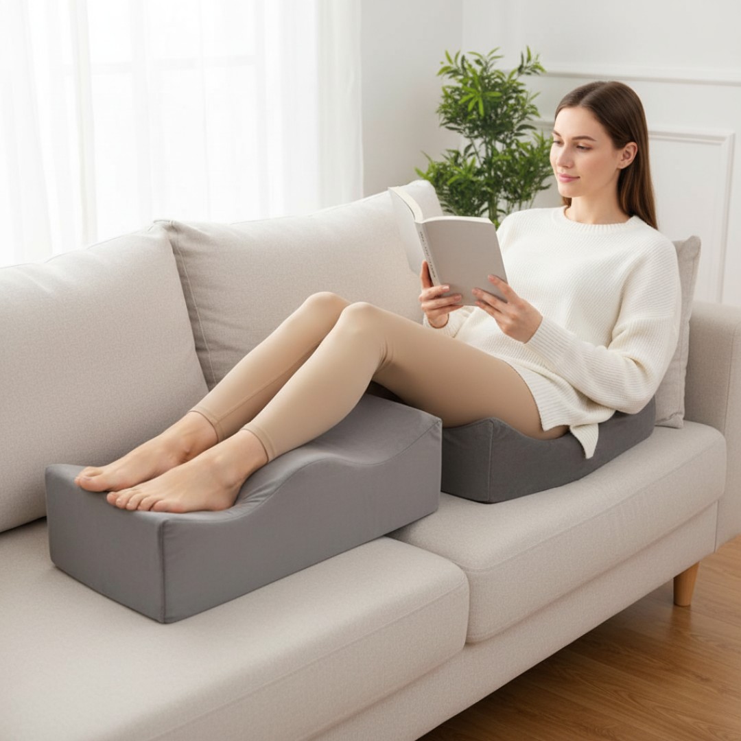 High-Elevation Leg Support: Ergonomic wave-shaped design elevates legs at an optimal angle to improve circulation, reduce swelling, and relieve pressure on knees and lower back.