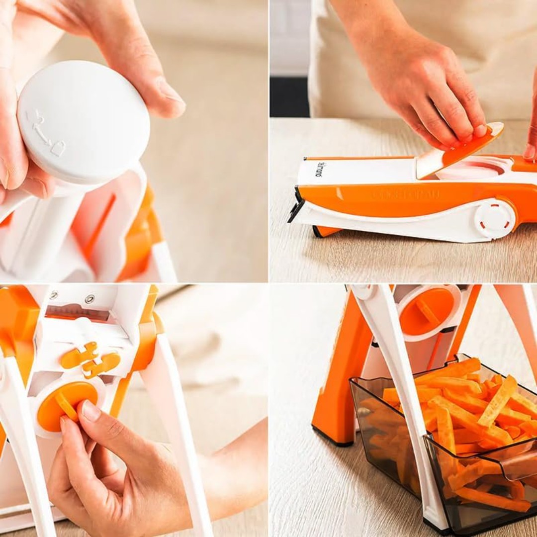 Multi-Function Slicing & Grating: Ideal for slicing, shredding, and grating a variety of vegetables and fruits such as potatoes, cucumbers, carrots, tomatoes, and cheese.