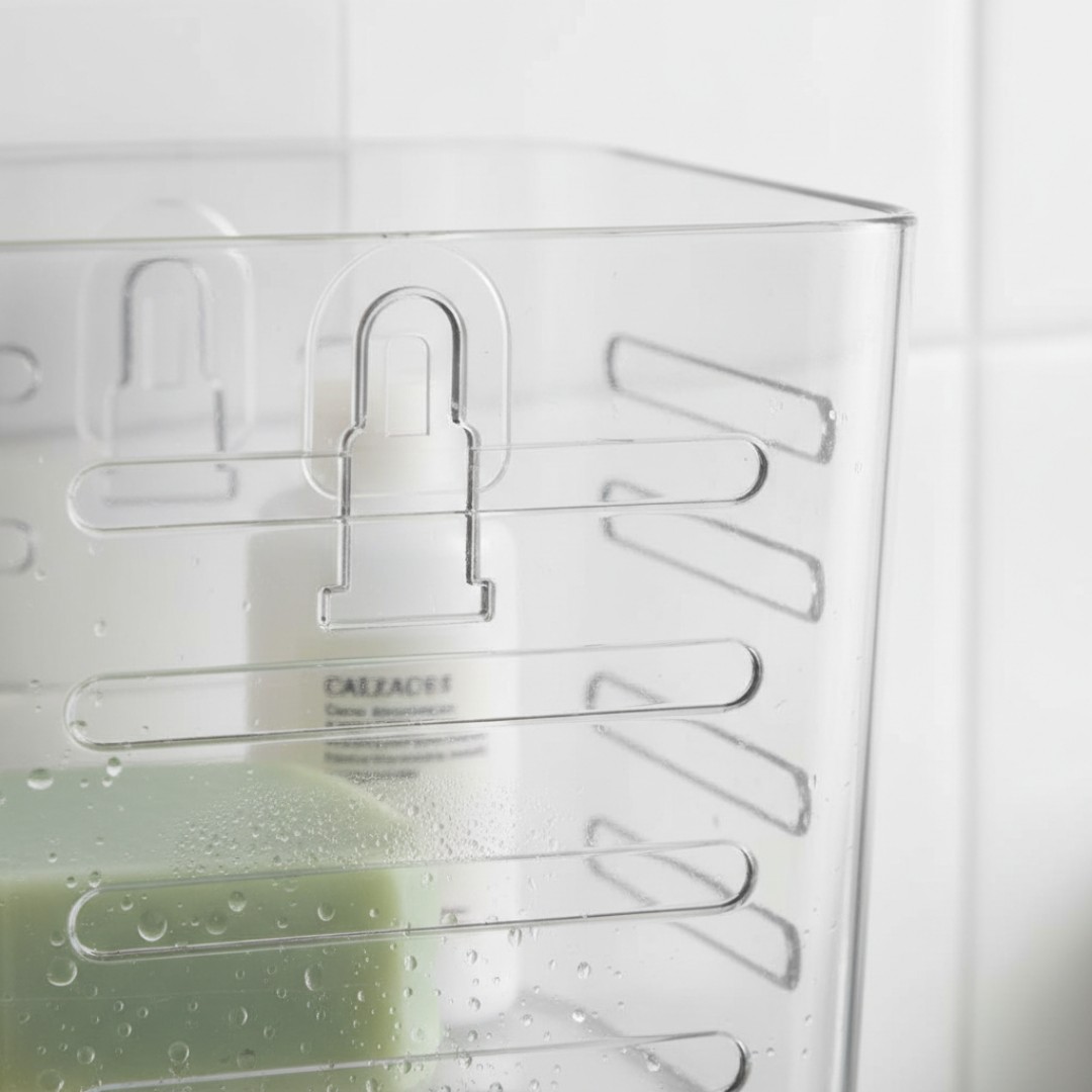 Ventilated Drainage Design: Features side and bottom slots that allow water to drain quickly, keeping items dry and hygienic.