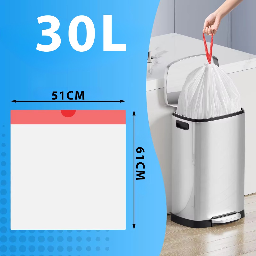 Large Practical Capacity: 30-liter capacity with size 50×60 cm, ideal for bathroom, kitchen, office, and bedroom trash bins.