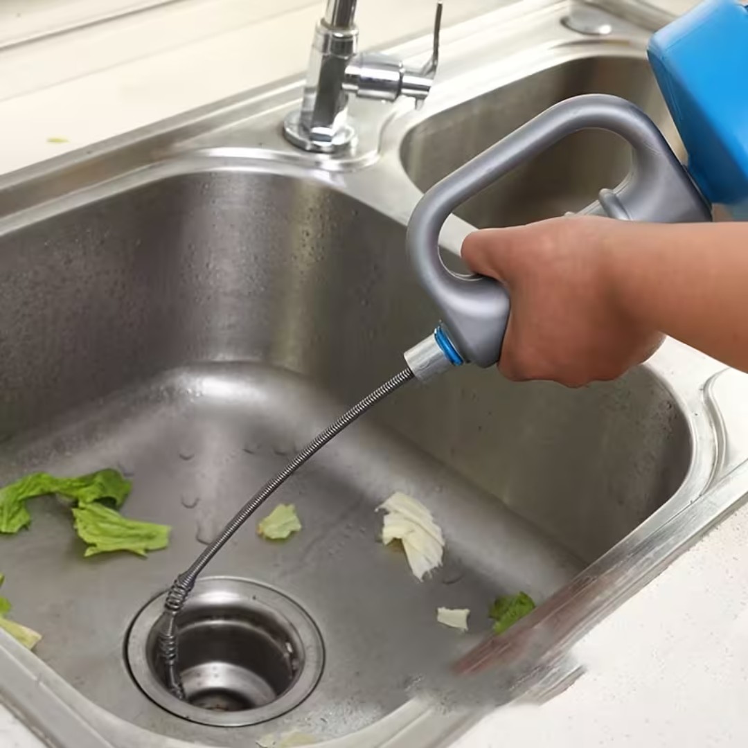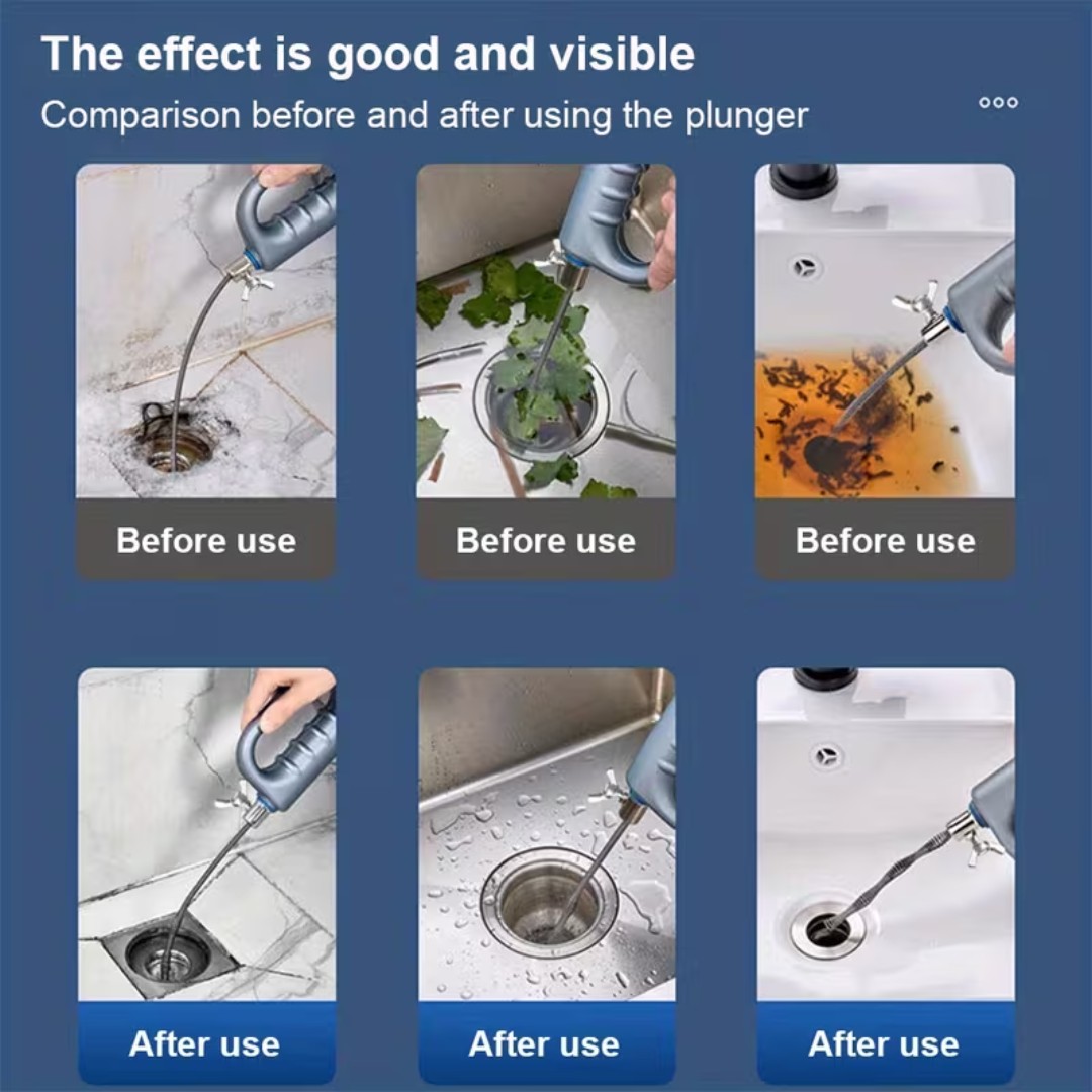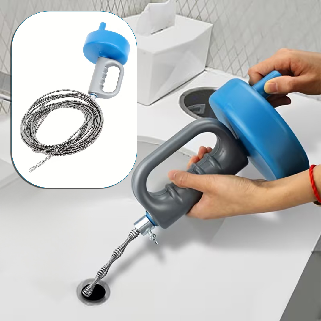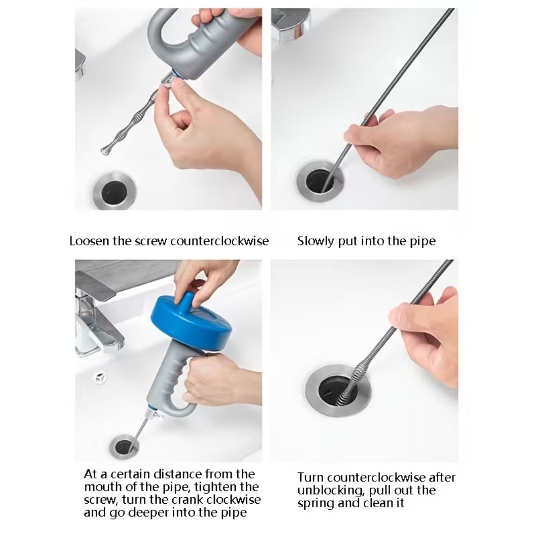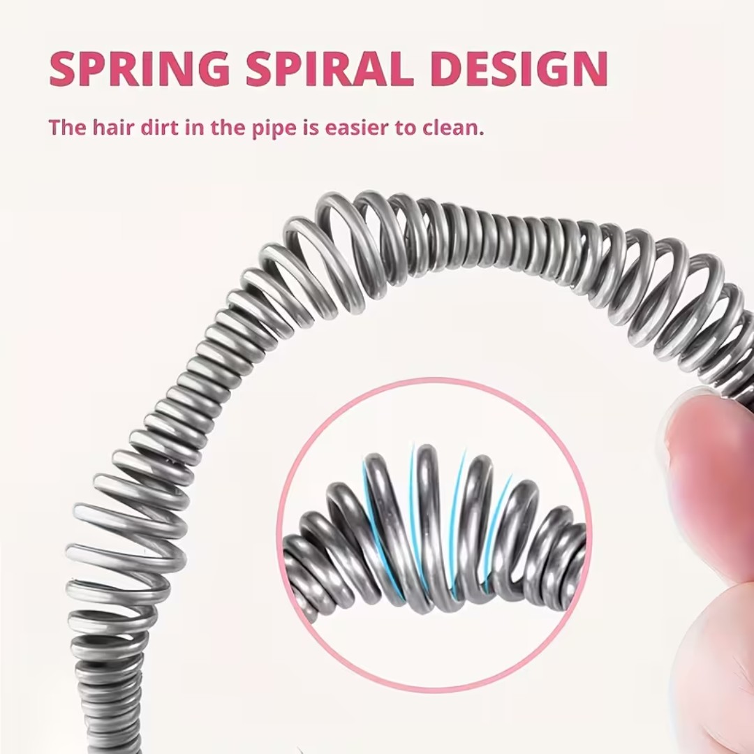 Powerful Spring Spiral Cleaning: Equipped with a flexible steel spring spiral that easily reaches deep into pipes to grab and remove hair, grease, and stubborn blockages.