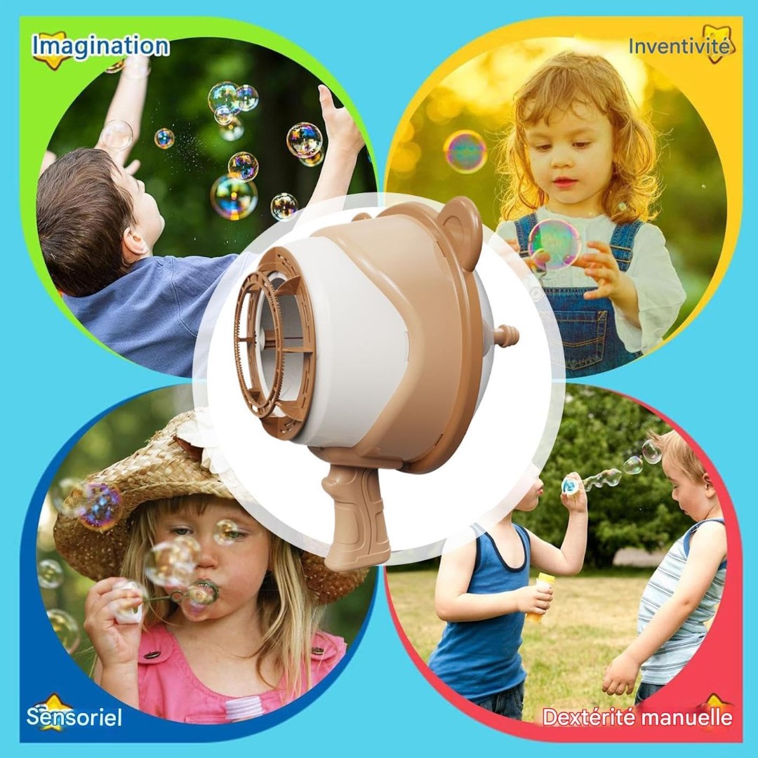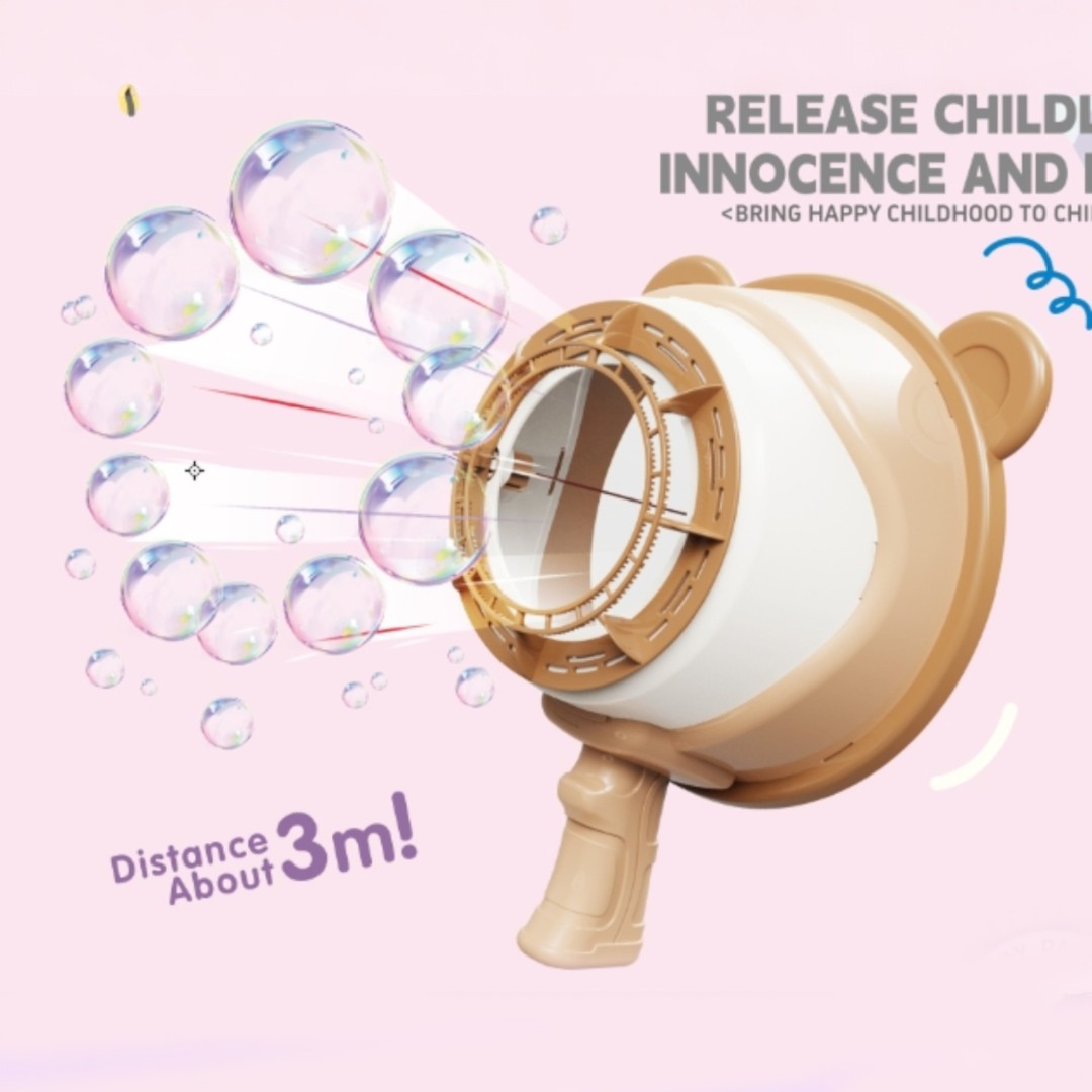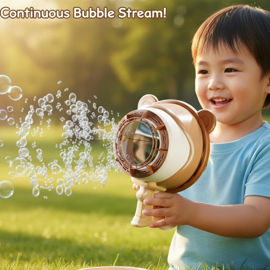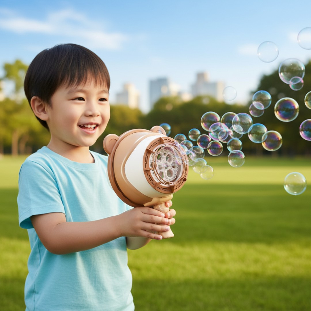 Automatic Bubble Blowing Fun: Produces a continuous stream of bubbles with one-button operation, keeping kids entertained without manual blowing.