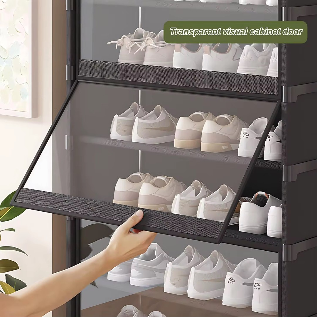 Transparent Flip Front Panels: Front openings allow clear visibility of shoes while protecting them from dust and keeping everything neatly organized.