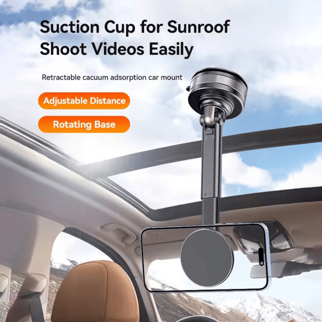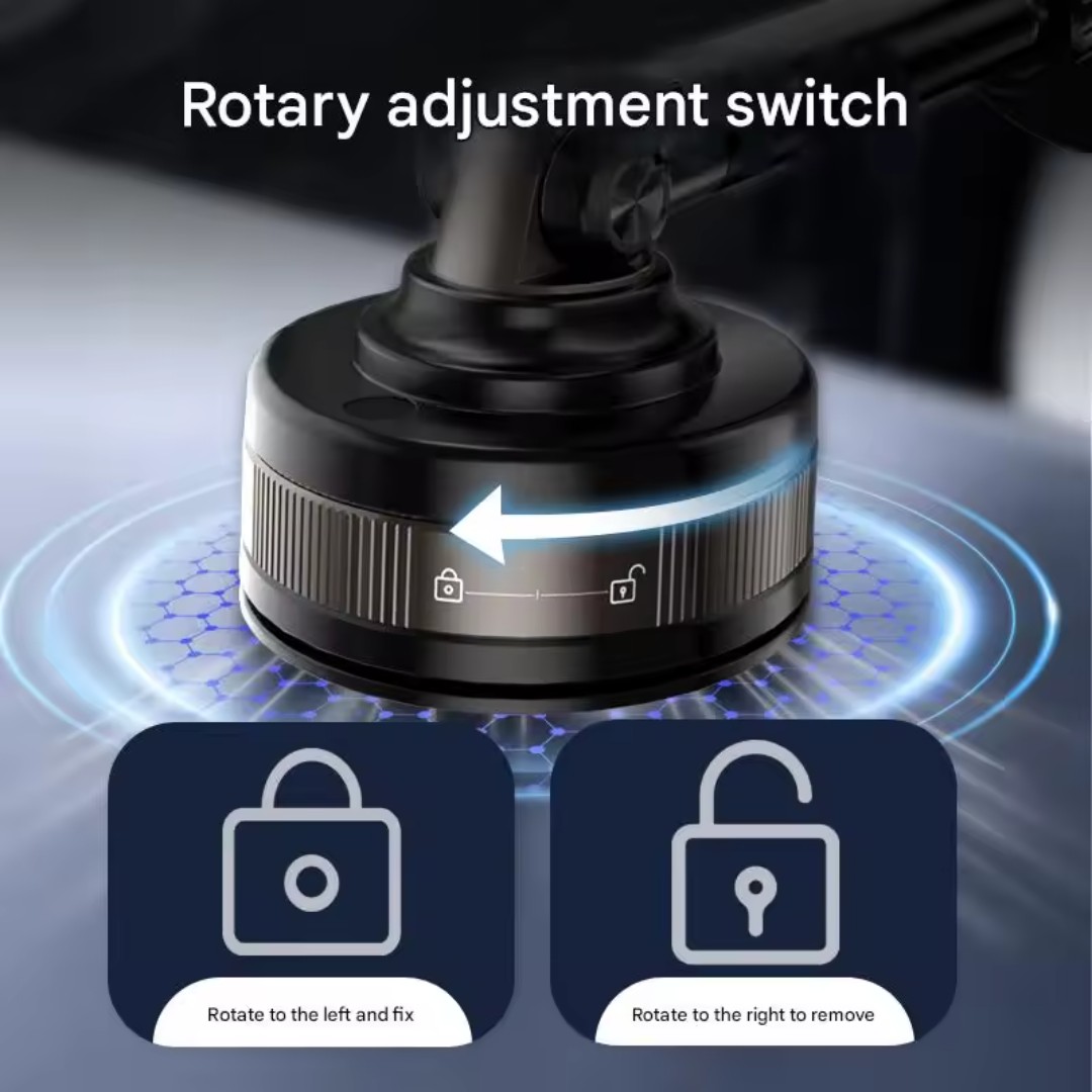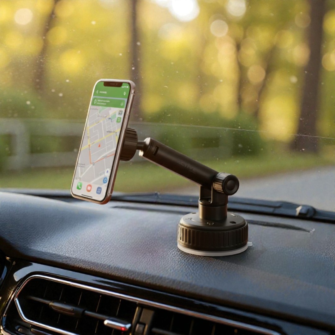 Strong Suction Cup Base: High-strength vacuum suction firmly attaches to dashboard, windshield, window, or sunroof without slipping or leaving marks.
