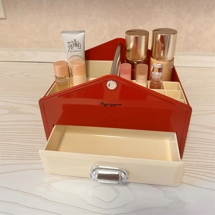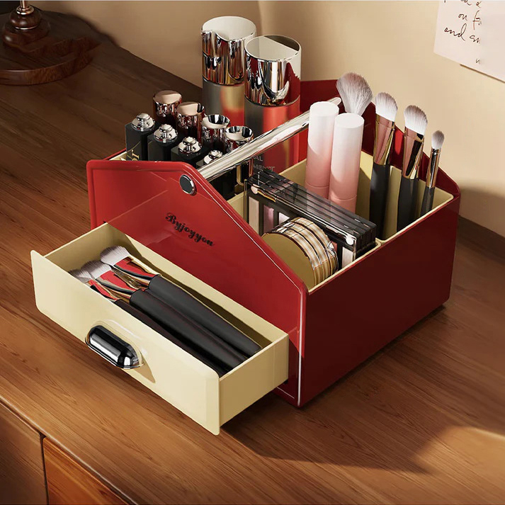 Elegant Multi-Compartment Design: Features well-divided sections to neatly organize lipsticks, brushes, foundations, perfumes, and daily cosmetics in one place.