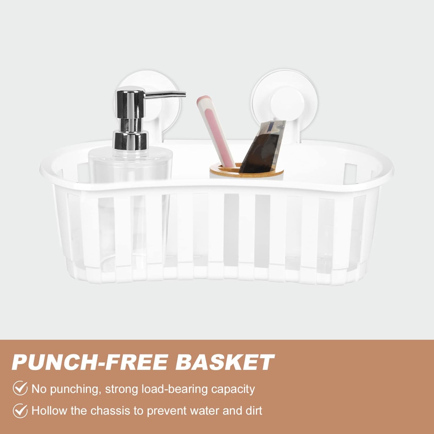 Efficient Drainage Basket Design: Open slotted structure allows water to drain quickly, keeping toiletries dry and hygienic.
