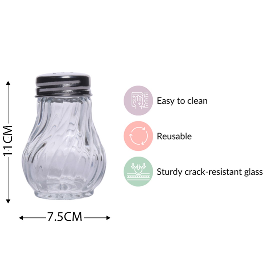 ๐๐๐ฟ๐ฎ๐ฏ๐น๐ฒ ๐๐น๐ฎ๐๐ ๐๐ผ๐ป๐๐๐ฟ๐๐ฐ๐๐ถ๐ผ๐ป: Made from thick, crack-resistant glass that ensures long-lasting use while keeping salt, sugar, or spices fresh and protected.