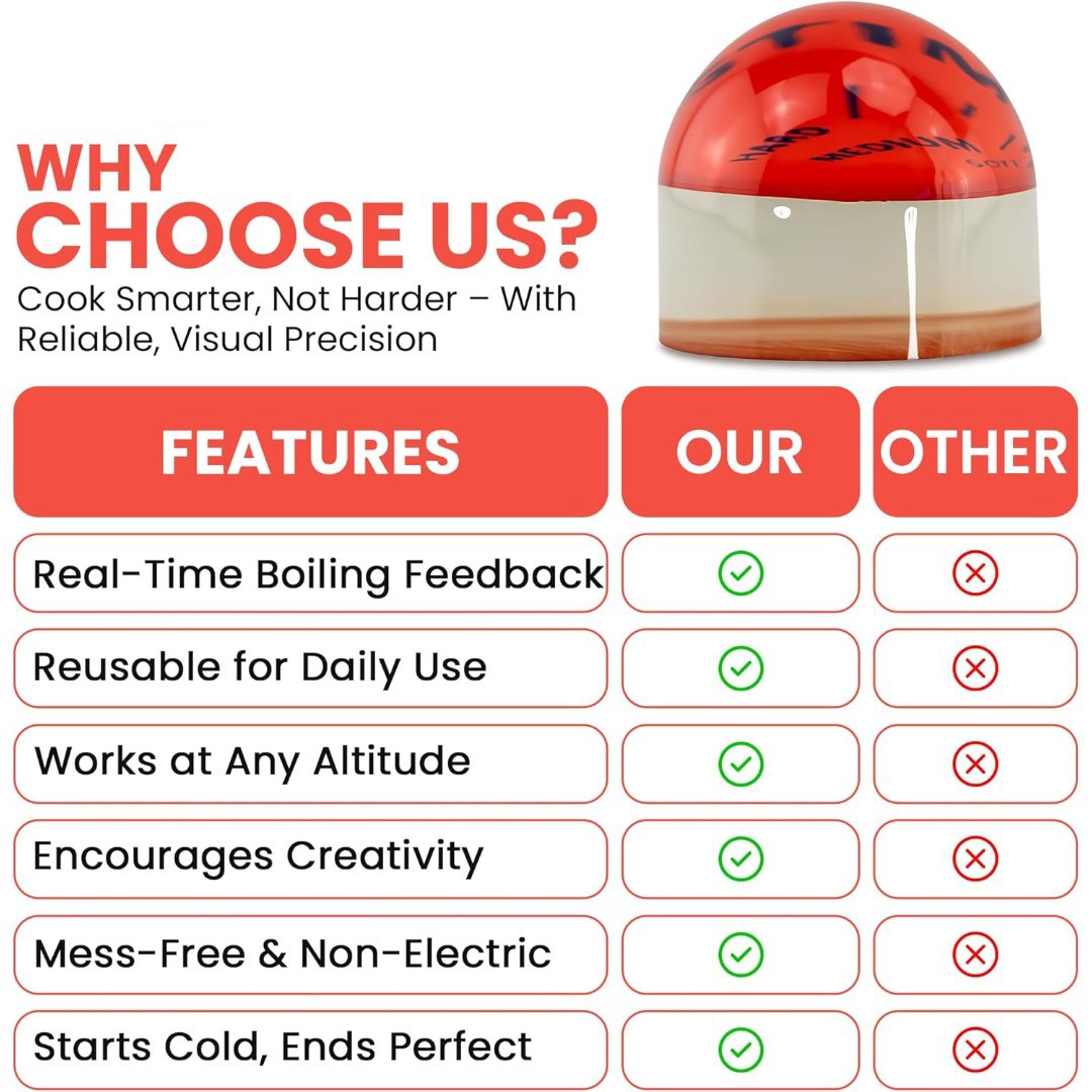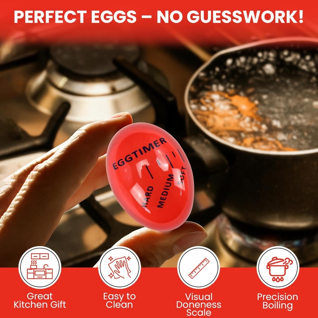 Color-Changing Precision: Heat-sensitive egg timer changes color in real time to clearly indicate soft, medium, or hard-boiled eggs with no guesswork.
