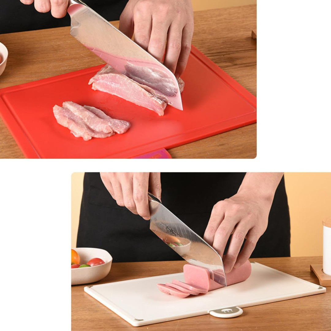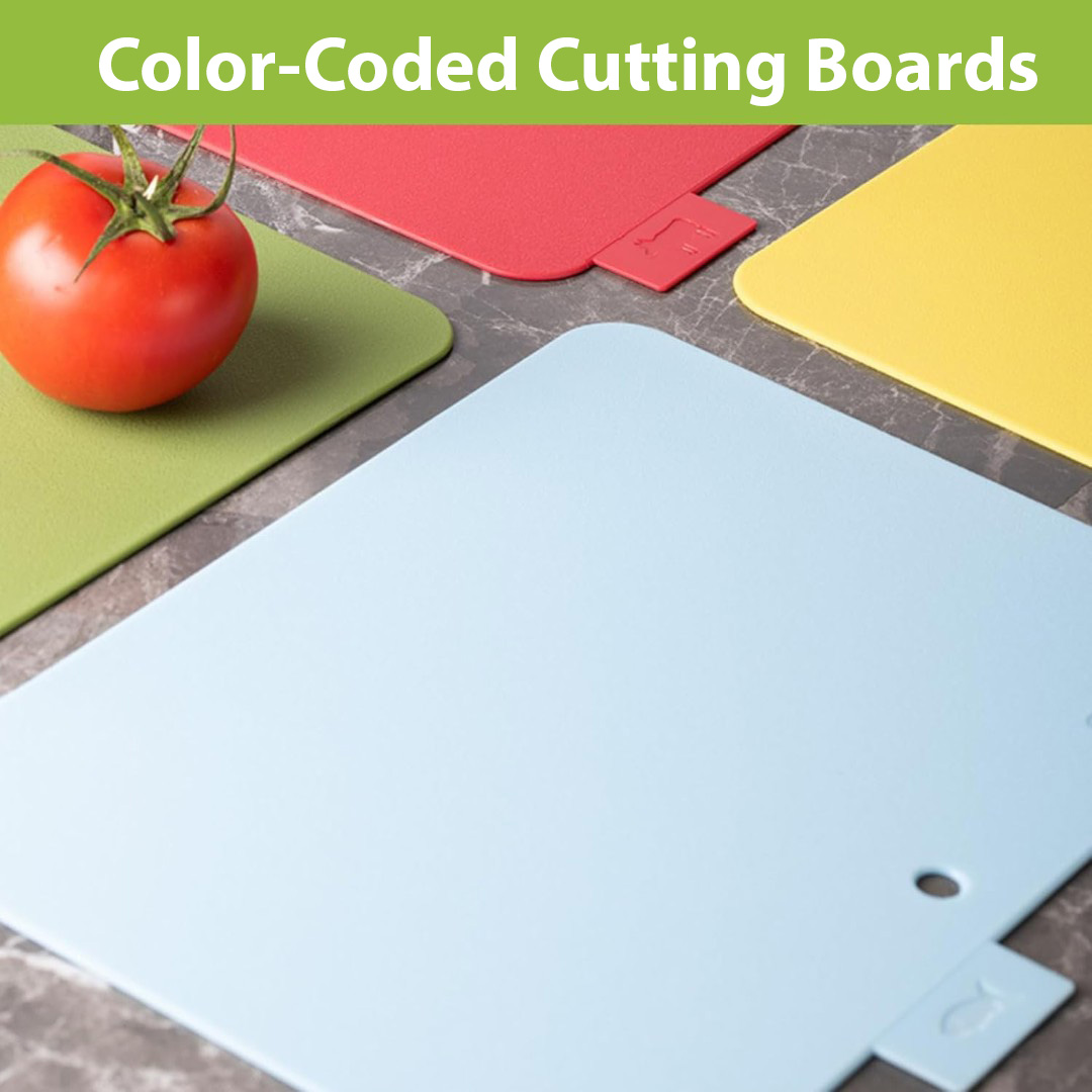 Color-Coded Boards: Multiple colored cutting boards help separate meat, fish, vegetables, fruits, and cooked foods to reduce cross-contamination.