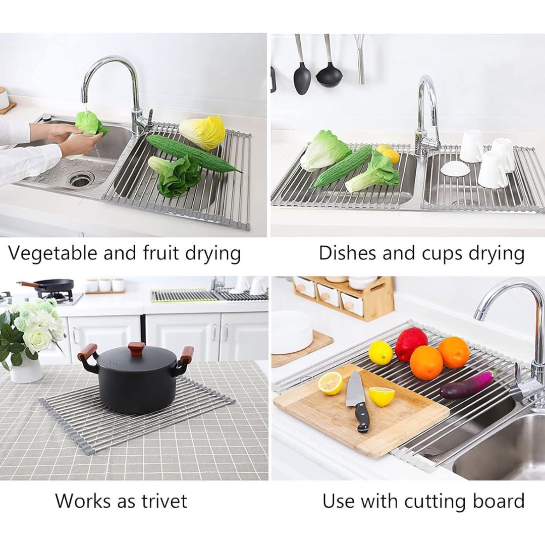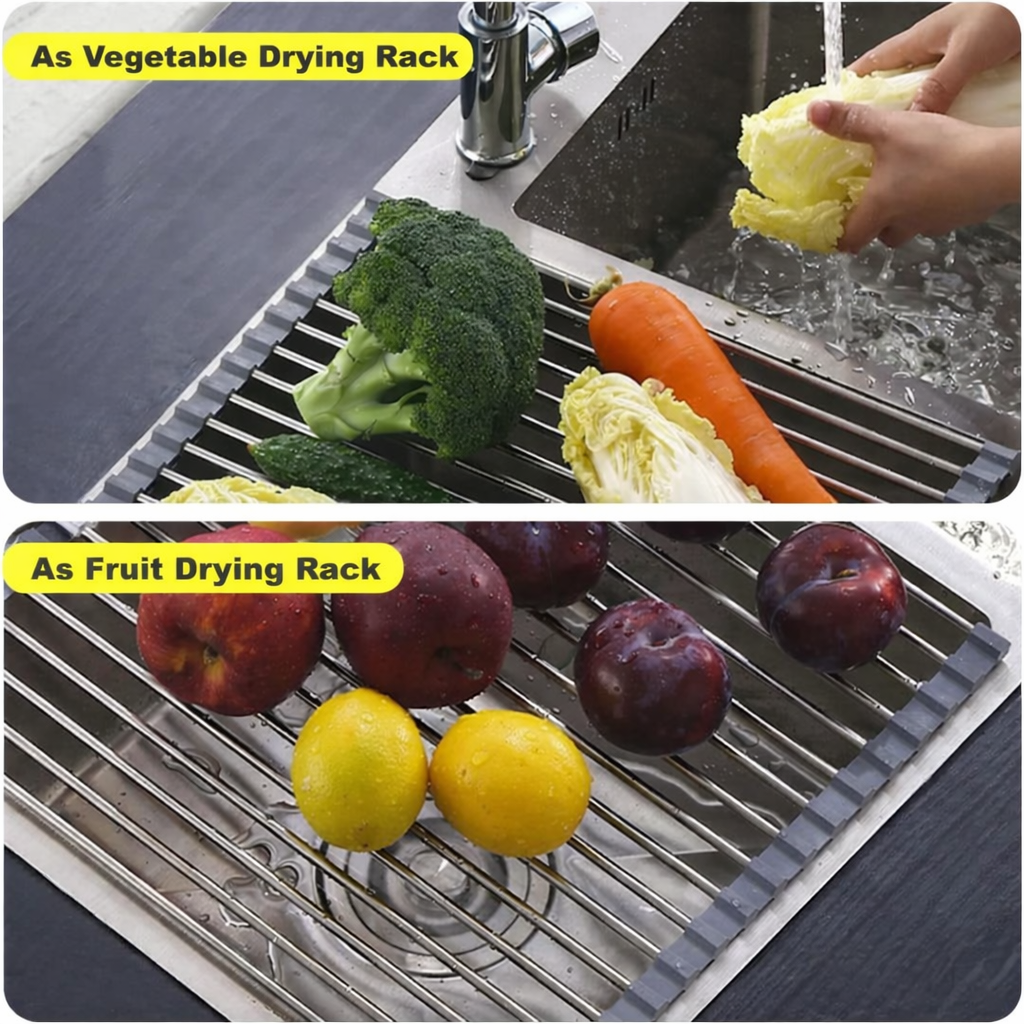 Multi-Purpose Sink Rack: Ideal for drying dishes, fruits, vegetables, cookware, and also works as a heat-resistant surface for hot pots and pans.