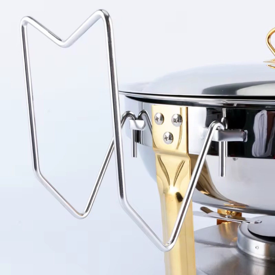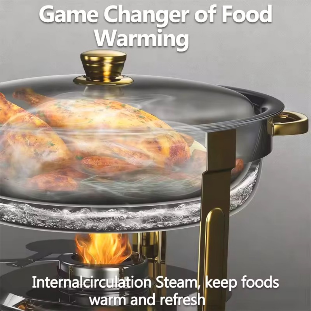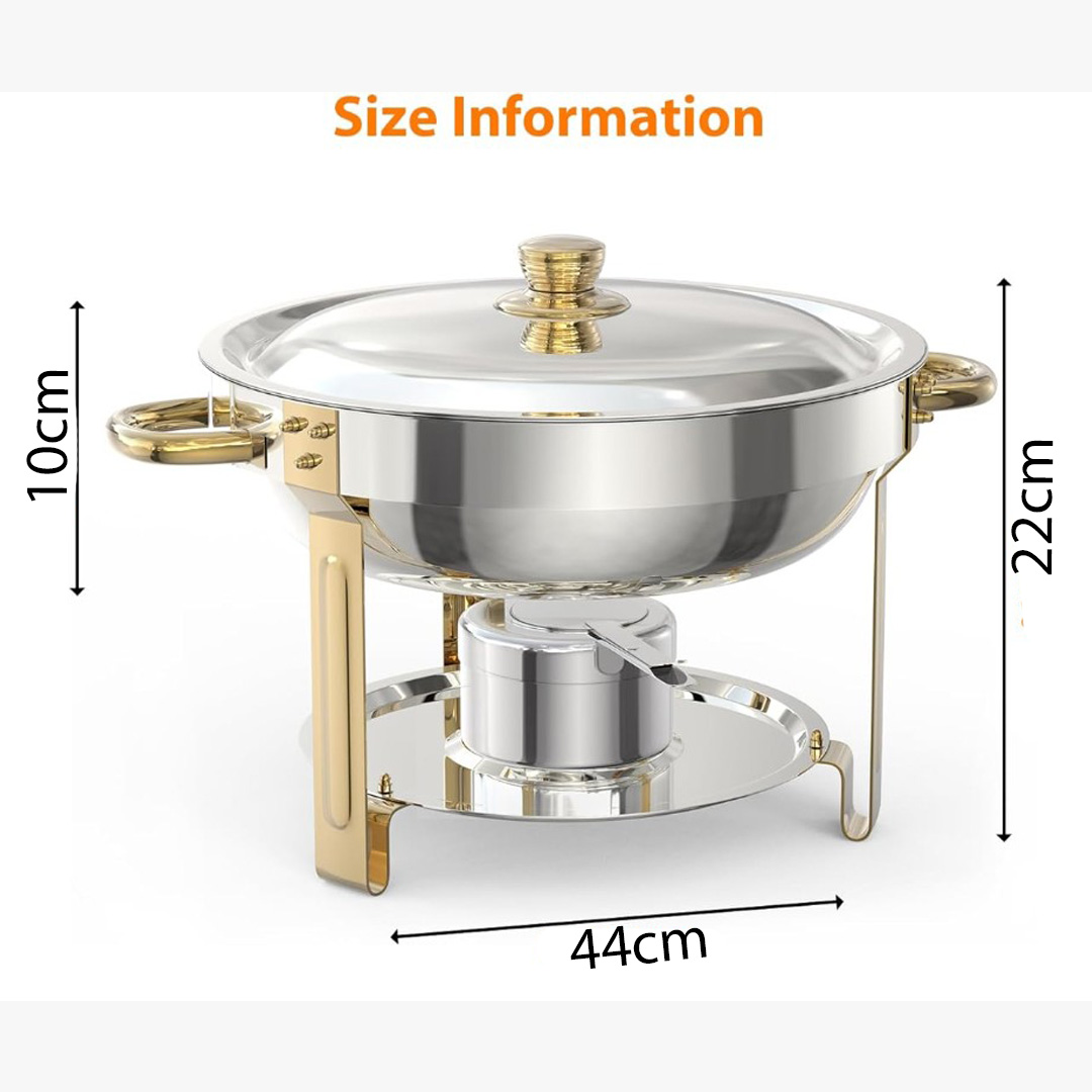 Elegant Buffet & Serving Design: Stylish round chafing dish with gold-tone accents adds a luxurious touch to buffets, catering events, hotels, and home gatherings.