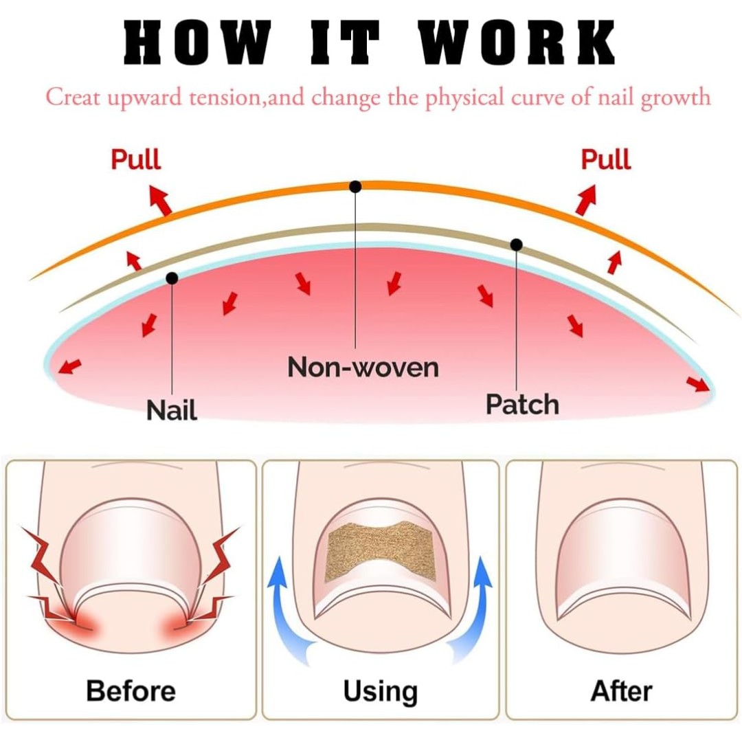 Simple & Painless Application: Easy to use at home—clean the nail, apply the strip, and press to fit; works gradually without cutting or invasive tools.