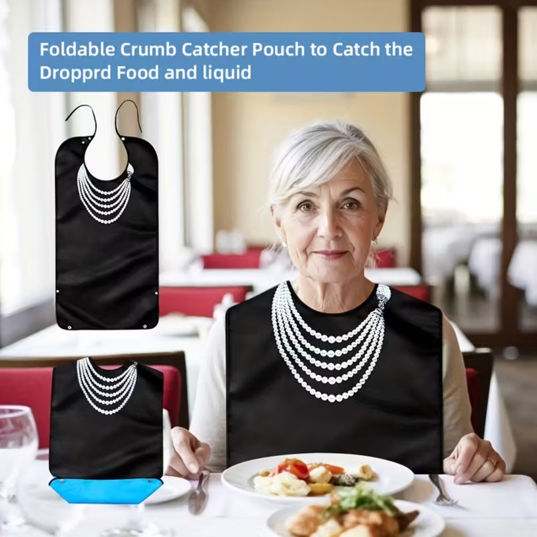 WATERPROOF PROTECTIVE DINING BIB: Designed to shield clothing from food spills, liquids, and stains, keeping users clean and comfortable during meals.