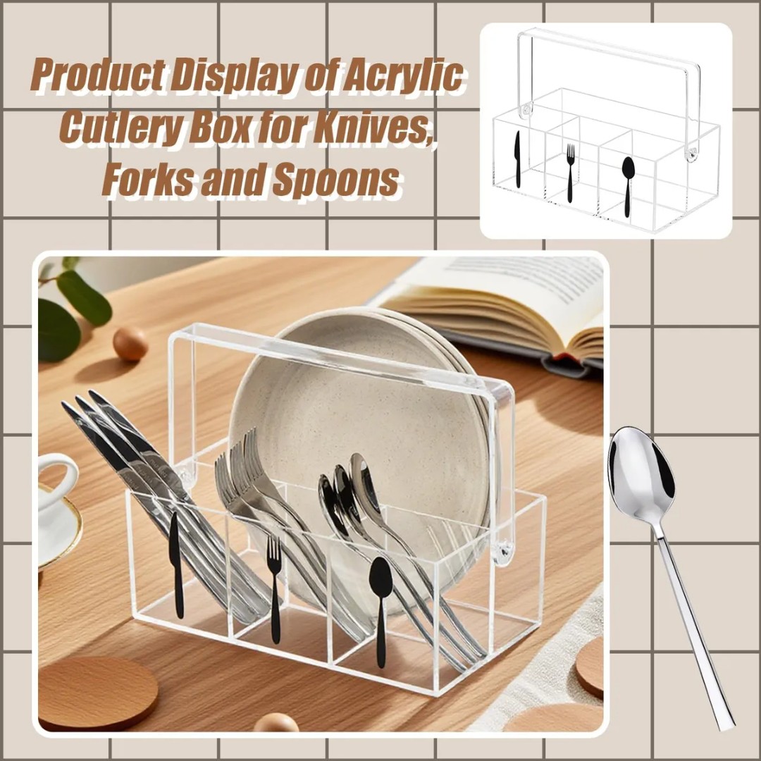 CLEAR ACRYLIC MULTI-COMPARTMENT DESIGN: Features divided sections to neatly organize spoons, forks, knives, and napkins for quick access and tidy presentation.