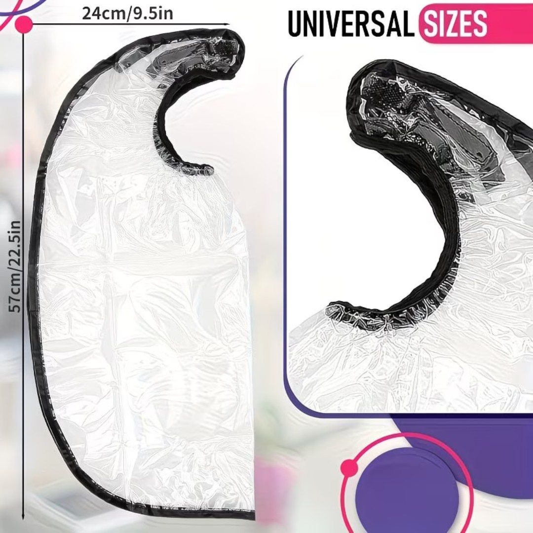 WATERPROOF PROTECTIVE HAIR CAPE: Designed to shield hair, skin, and clothing from oils, lotions, dyes, face masks, and water during beauty treatments or grooming.