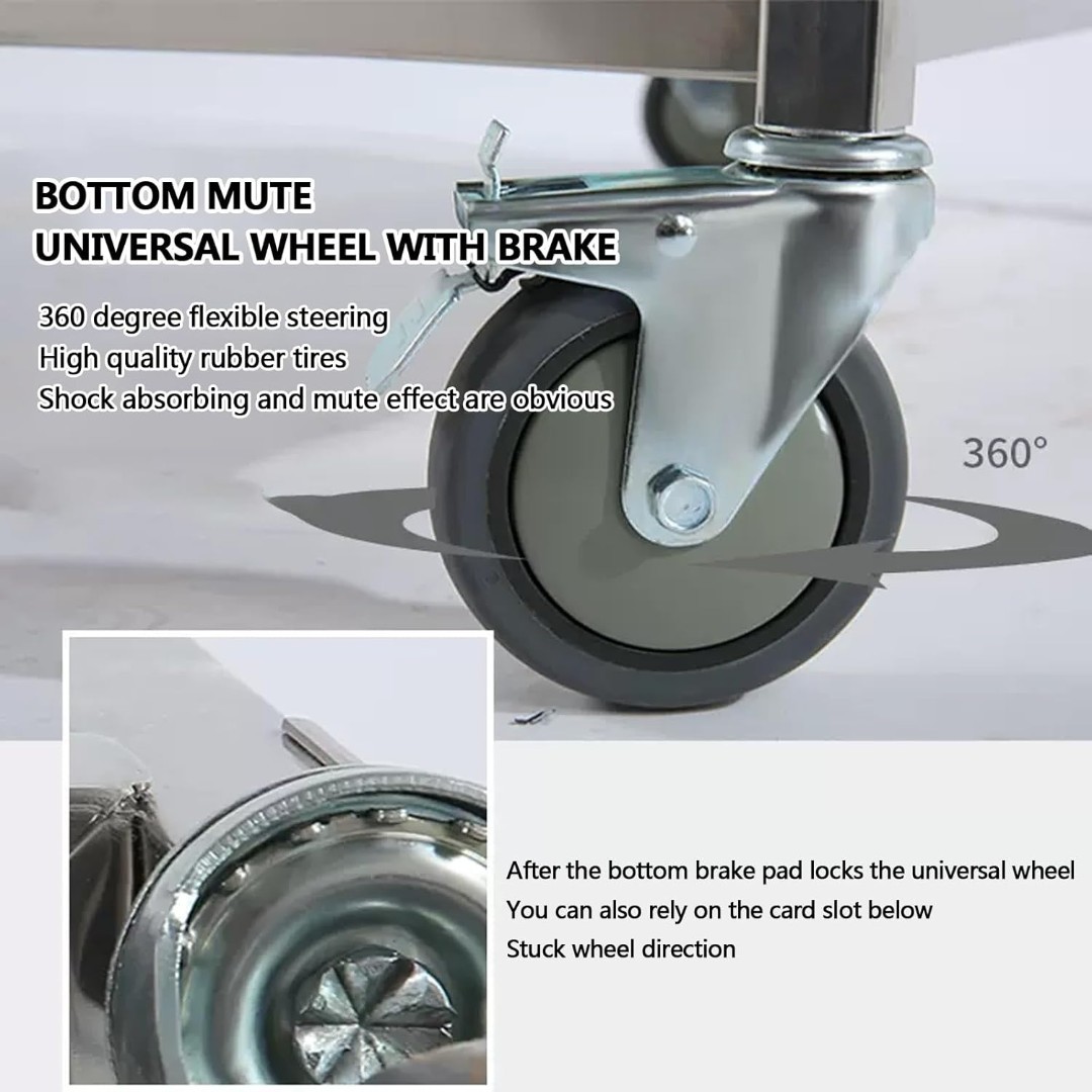 SMOOTH 360° ROTATING WHEELS WITH BRAKES: Equipped with quiet universal caster wheels that rotate freely for easy movement, plus secure brake locks for stable positioning when needed.
