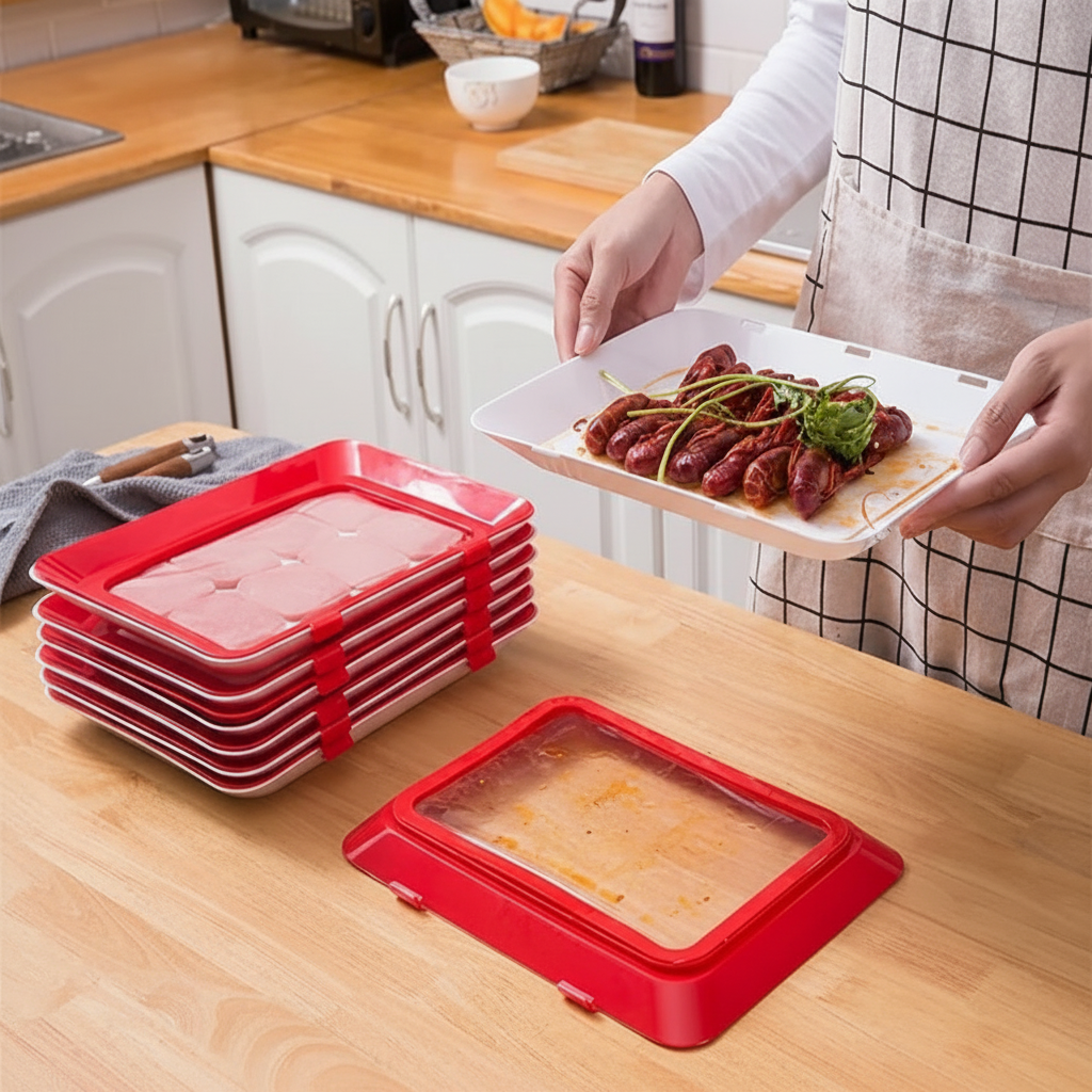 Airtight Food Preservation Design: Designed with a flexible sealing lid that tightly locks over the tray to create an airtight barrier, helping keep food fresh for longer while preventing spills and leaks.