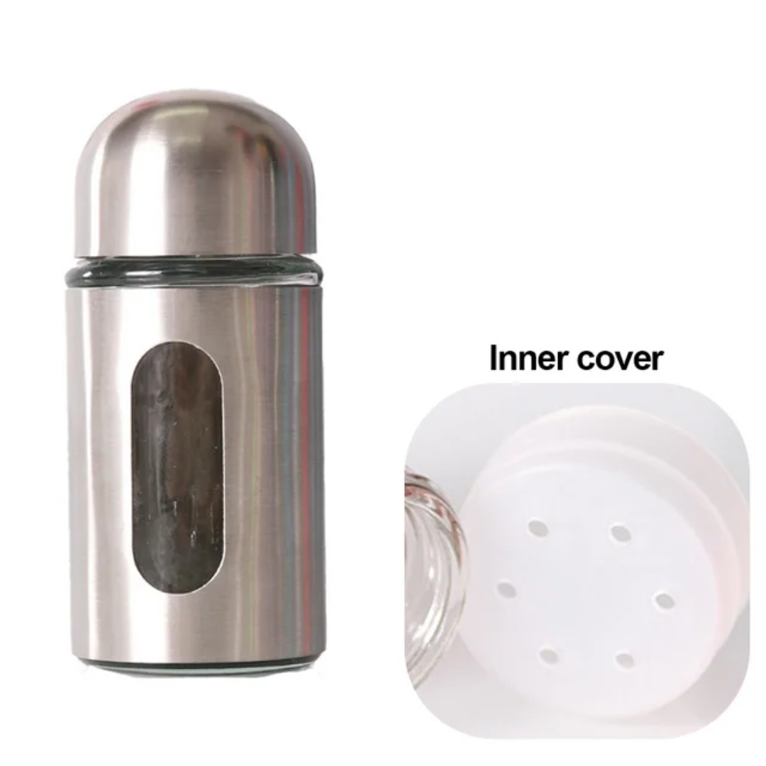 Durable Stainless Steel Spice Shaker: Made with high-quality stainless steel and a sturdy glass inner container that ensures durability while keeping spices fresh and protected.