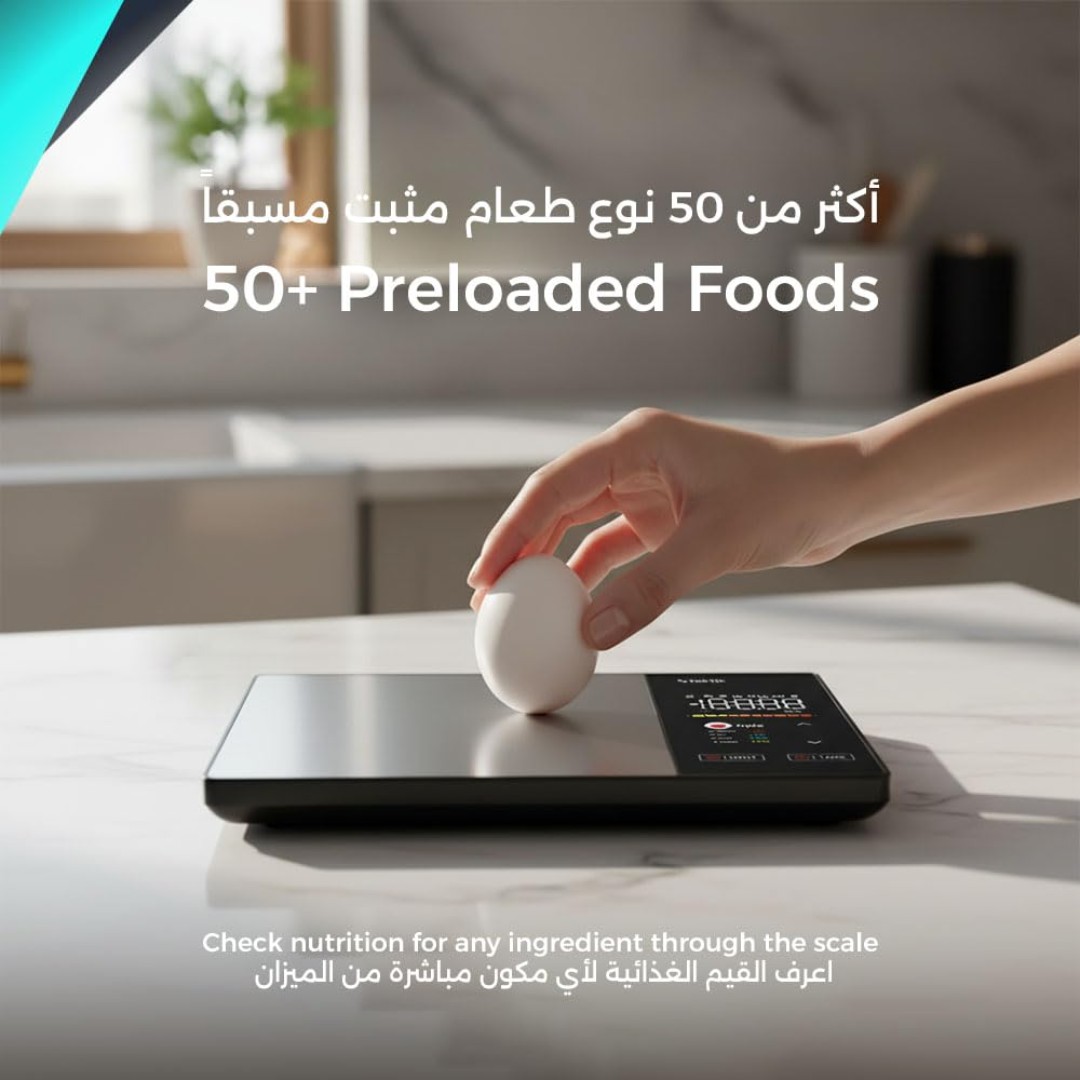 Clear TFT Color Display: Equipped with a bright TFT screen and interactive interface that shows weight and nutritional data clearly for quick and easy reading.