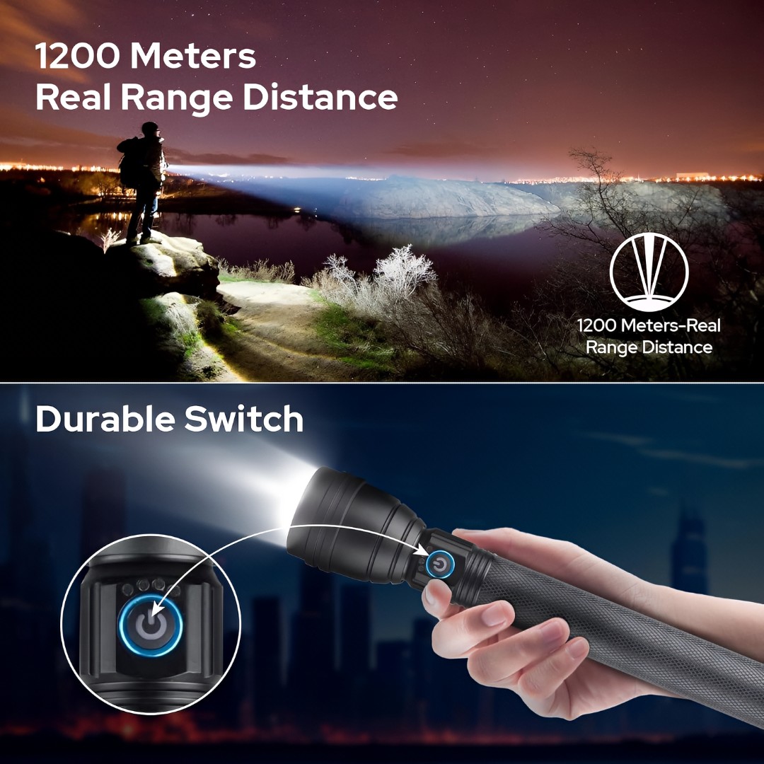 Ultra-Bright LED Flashlight: Equipped with a powerful high-intensity LED that delivers strong and focused illumination, ideal for outdoor activities, security, camping, and emergency situations.