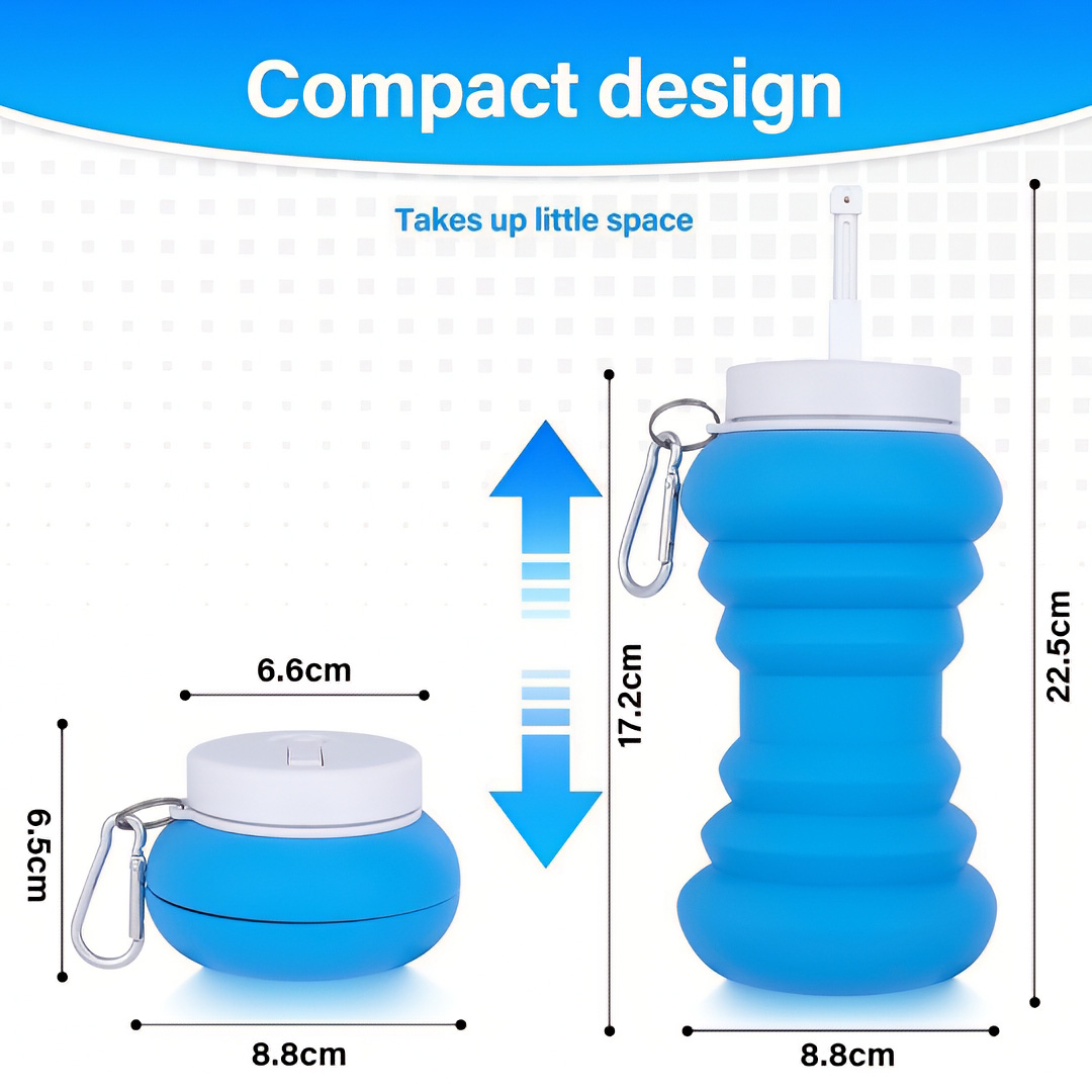 Collapsible Space-Saving Design: The foldable bottle compresses into a compact size for easy storage in bags, luggage, or travel kits.