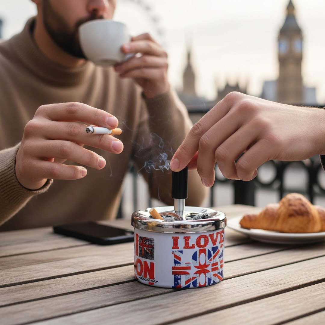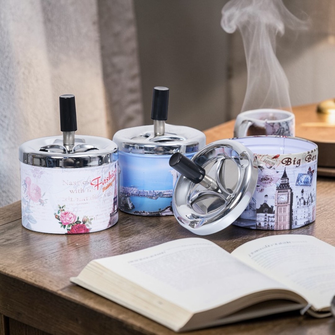 Classic Push-Down Ashtray Design: Innovative push-down mechanism allows you to easily dispose of cigarette ash by simply pressing the handle, keeping ash and odor contained inside the container.
